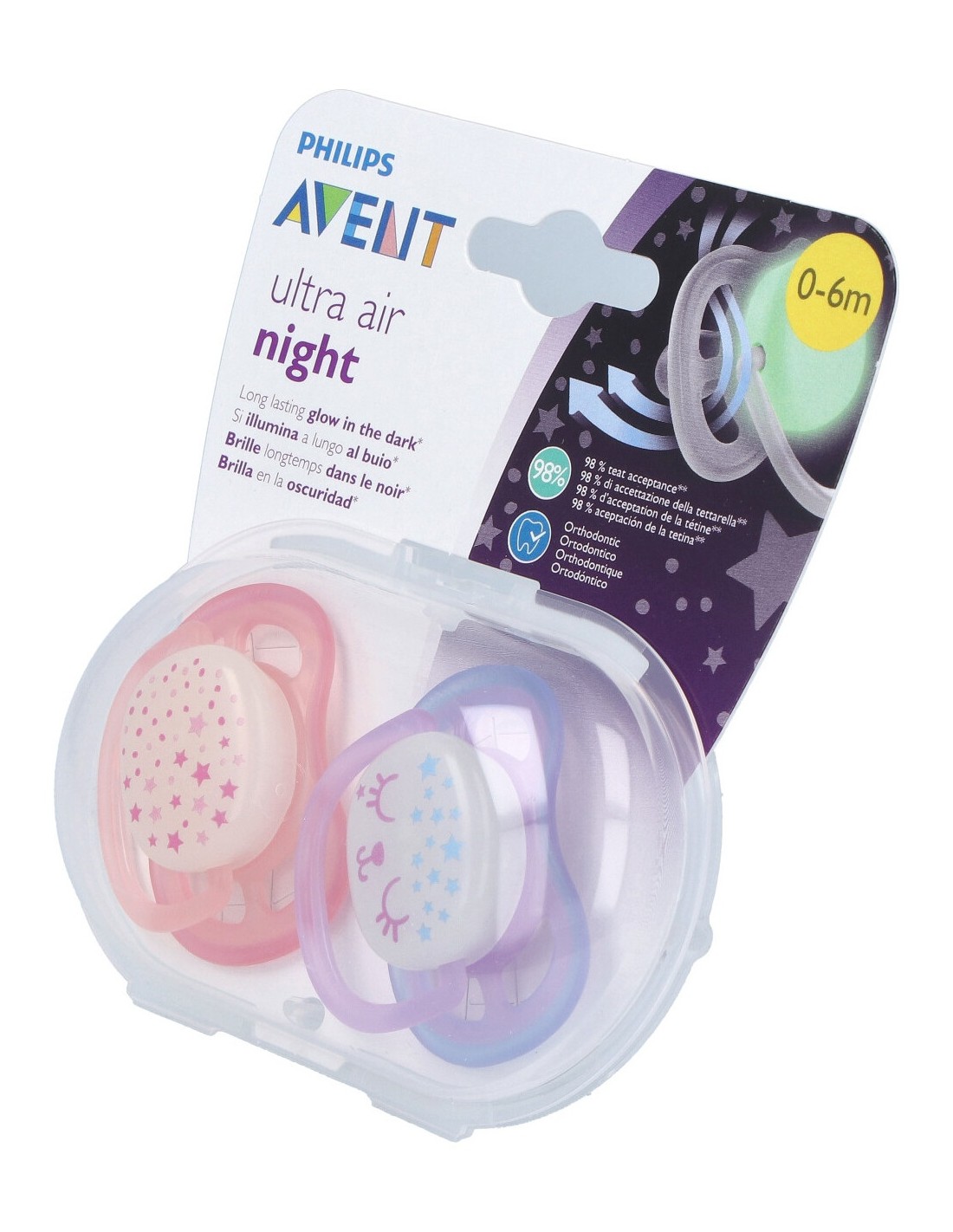 Es un pack de chupetes nocturnos de 6 a 18 meses es ideal para calmar al bebé.