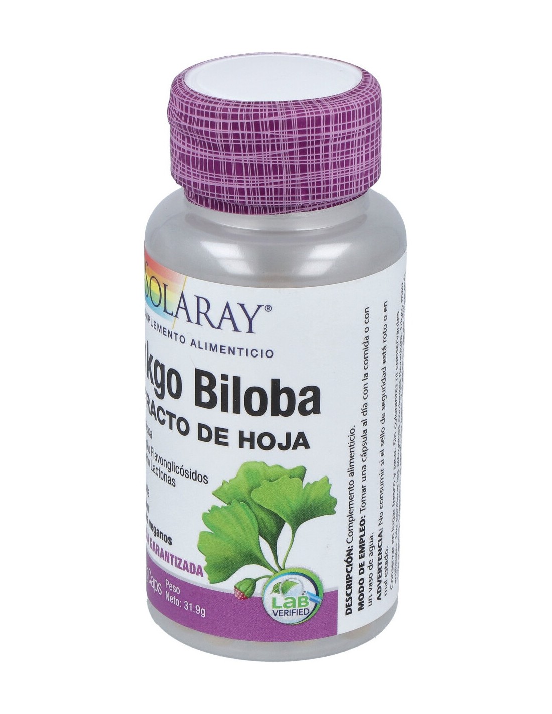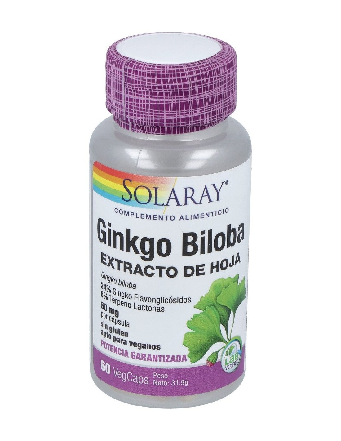 extracto de hoja (garantiza 14.4 mg [24%] ginkgo flavonglicósidos y 3.6 mg [6%] terpeno lactonas)