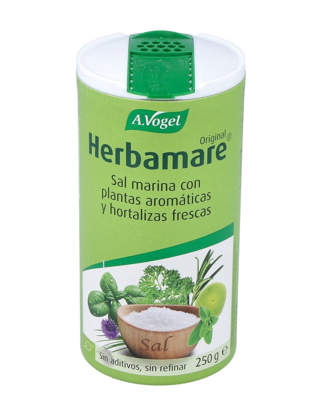 A. Vogel Herbamare Original es un sazonador aromático, formulado a base de una rica mezcla de sal marina, hortalizas frescas, hierbas aromáticas y de alga marina kelp. Logra darle un rico sabor a tus comidas sustituyendo otros productos como la sal común, más perfudicial para tu salud.
