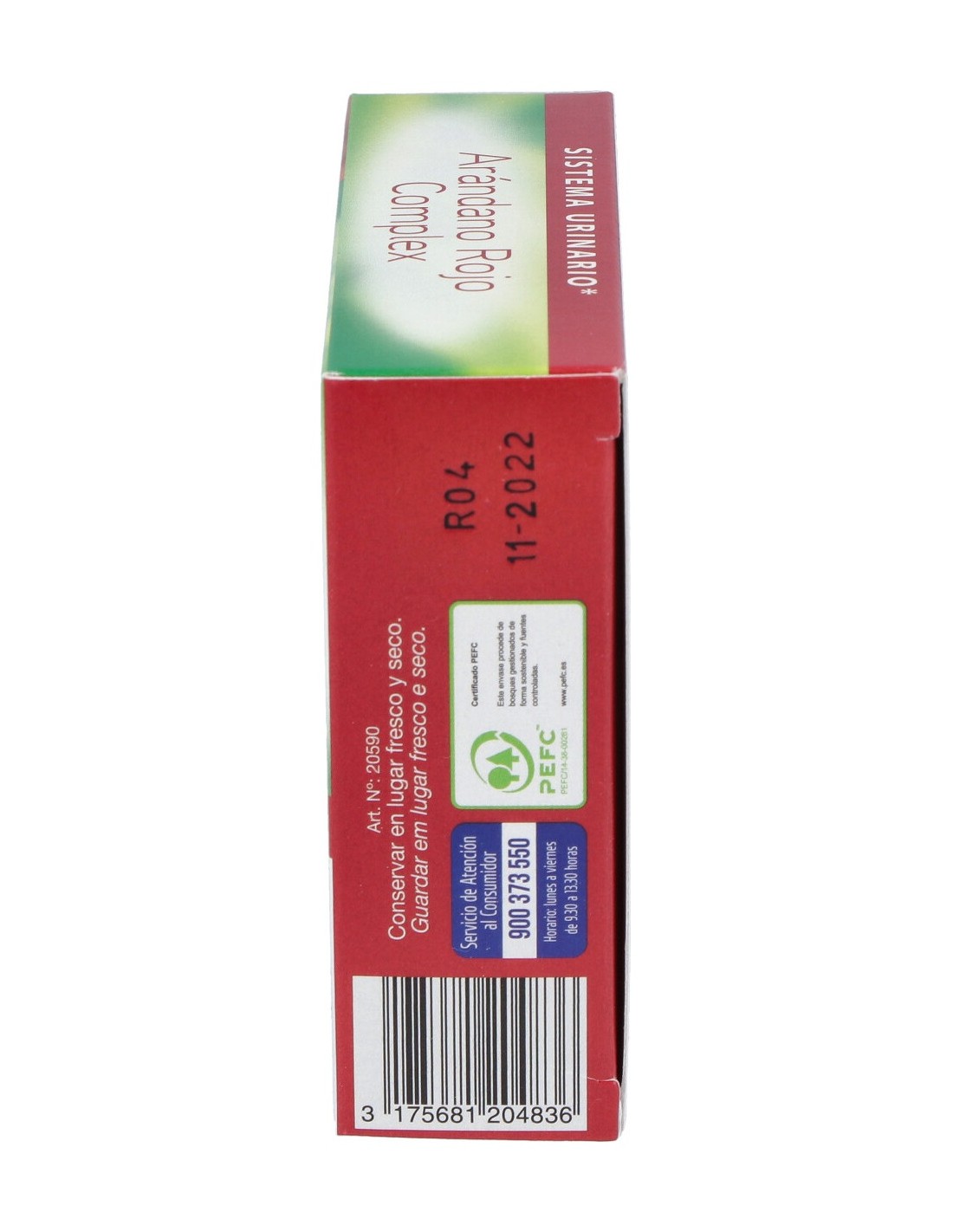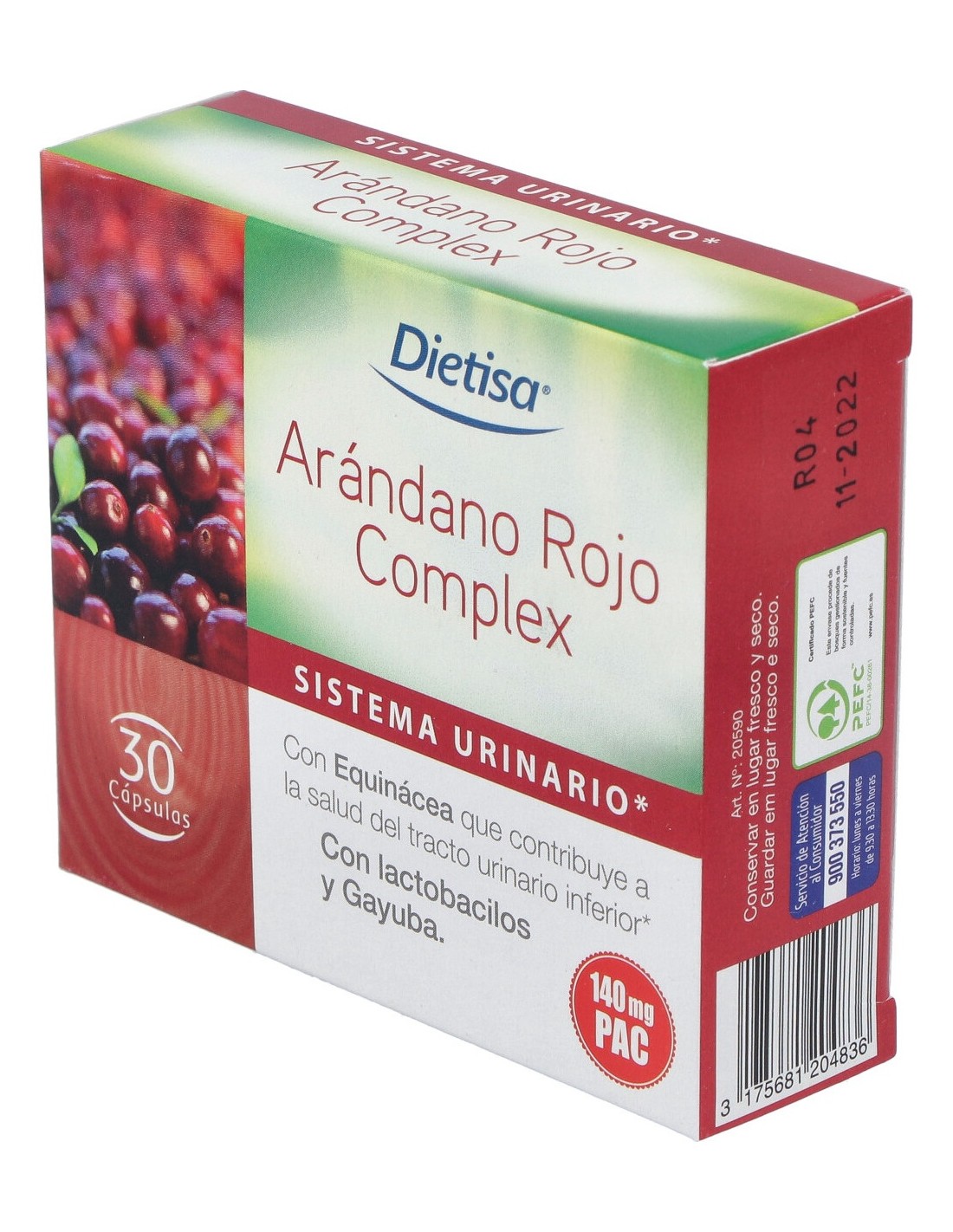 Complemento alimenticio a base de un extracto natural estandarizado de Arándano Rojo con elevada concentración de PAC-A (proantocianidinas-A) junto a otros ingredientes con efectos favorables en las molestias por cistitis.