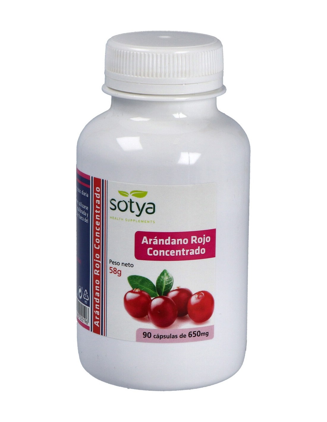Sotya Arándano Rojo Concentrado 650mg 90caps es un complemento alimenticio que aprovecha a las propiedades del arándano rojo para la prevención de infecciones urinarias y el colesterol.