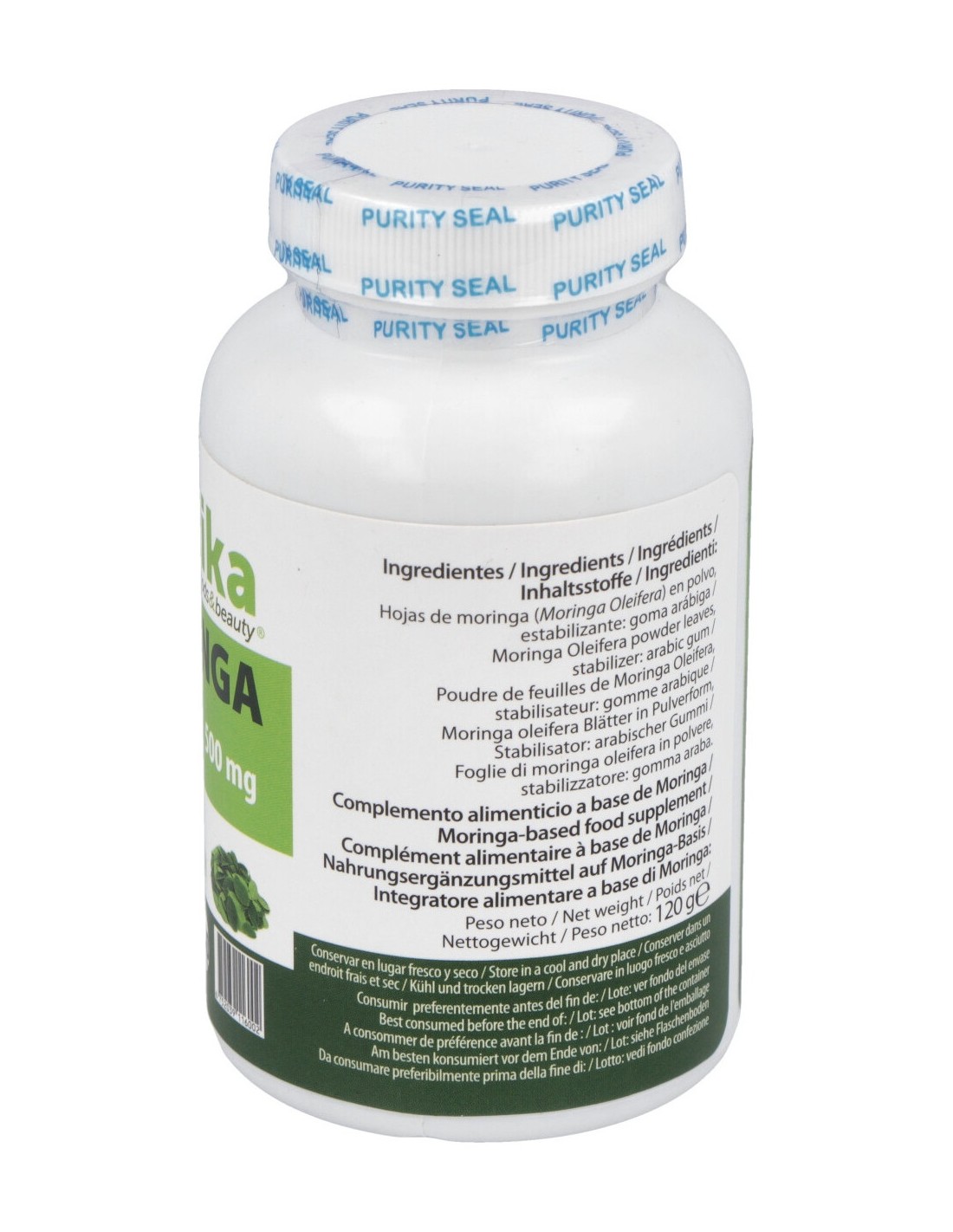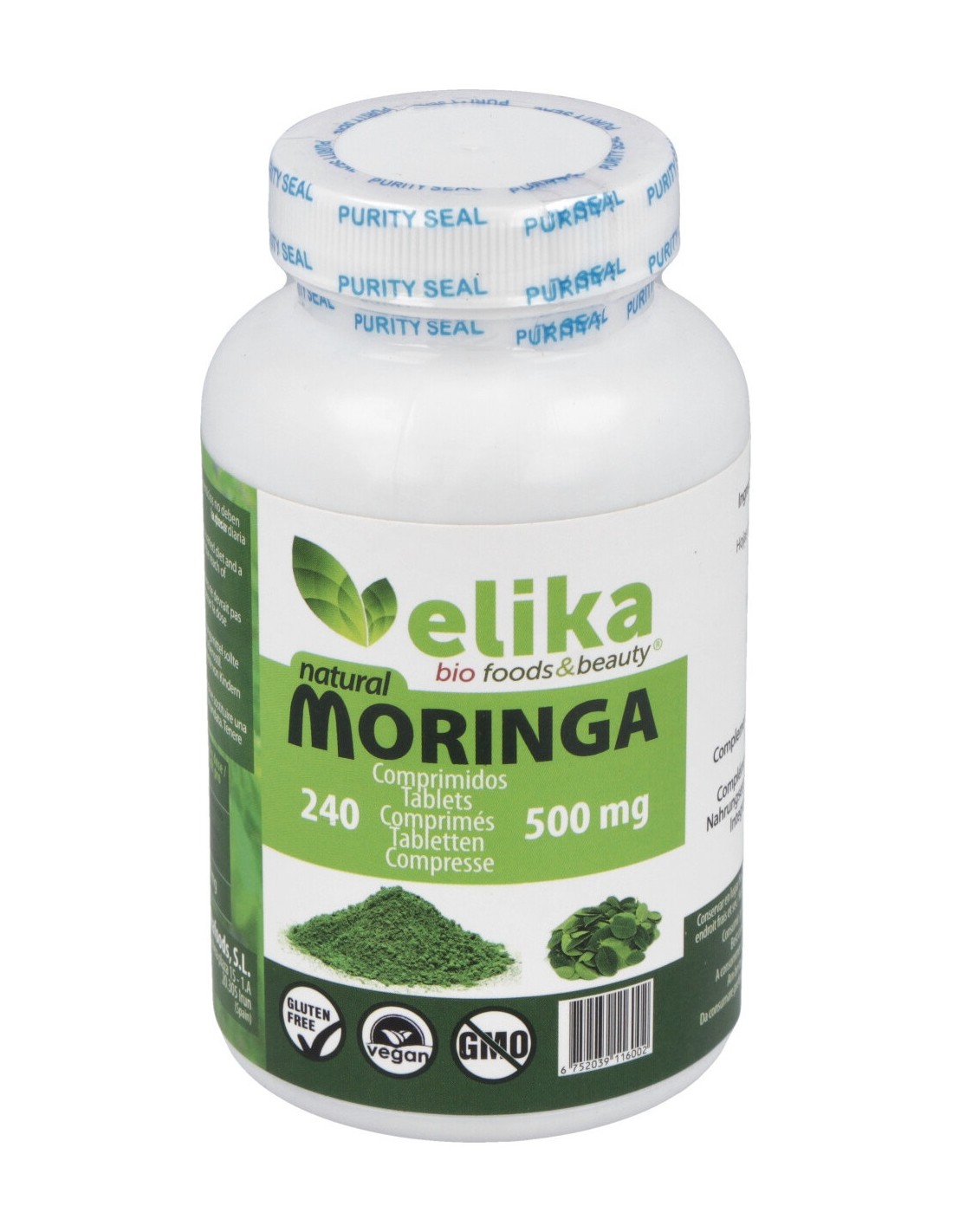 La Moringa contiene miles de veces más Zeatina que cualquier otra planta conocida, el potente nutriente antienvejecimiento. Su espectro de vitaminas incluye las vitaminas A, B1, B2, Niacina, B6, Biotina, C, D, E, K y los minerales Calcio, Cobre, Hierro, Potasio, Magnesio, Manganeso y Zinc.MORINGA 240comp. de ELIKAFOODS