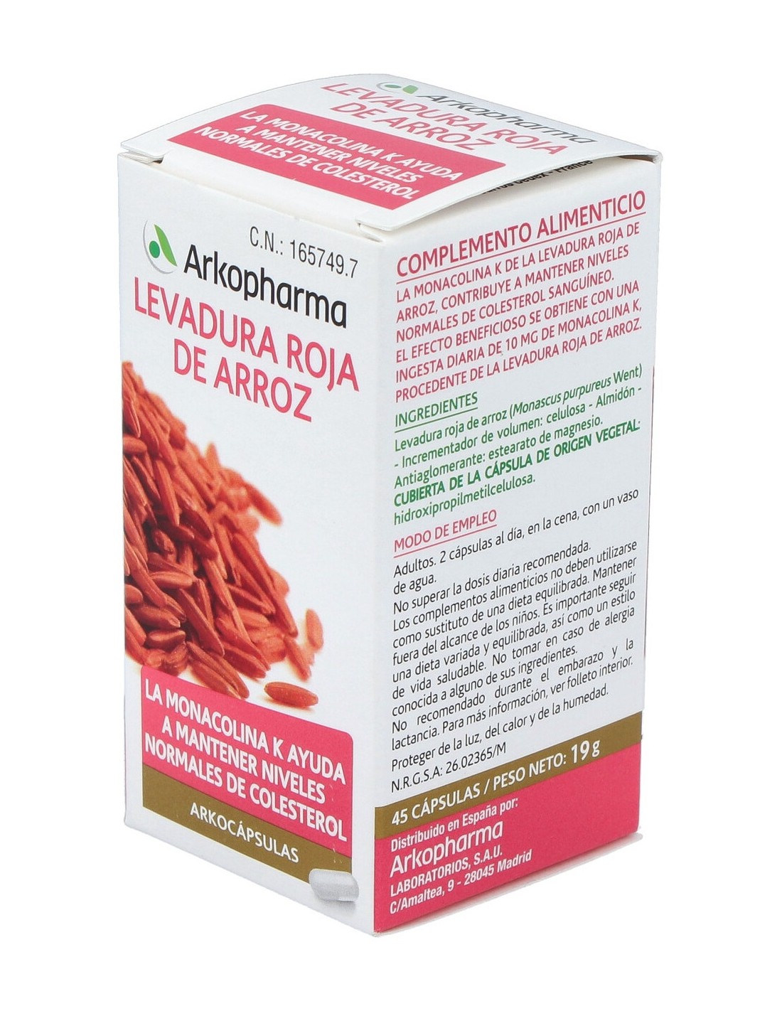 La levadura roja de arroz o Monascus purpureus es un tipo de hongo que crece sobre este cereal y lo fermenta tornándolo rojizo. Desde tiempos de la Dinastía Ming ha estado incluída en la farmacopea China y se le han asociado propiedades para el alivio de problemas digestivos o circulatorios.El efecto beneficioso de la levadura roja de arroz está relacionado con unas sustancias que se generan durante su fermentación: las monacolinas y, en concreto, la monacolina K. Estas sustancias ayudan a limitar la síntesis del colesterol endógeno en el organismo. Asimismo, la levadura roja de arroz contiene otros compuestos como isoflavonas y esteroles que refuerzan su efecto antioxidante beneficioso.Antes de tomar un suplemento con levadura roja de arroz es necesario que tu médico/a realice una evaluación global del riesgo cardiovascular. Los hábitos de estilo de vida son un primer aspecto que hay que cuidar cuando el colesterol está elevado: sigue una dieta equilibrada y practica actividad física. Recuerda que no está indicada la suplementación con levadura roja de arroz si ya estás en tratamiento para la hipercolesterolemia con un medicamento. Tampoco debe tomarse junto a otro complemento alimenticio que contenga el mismo ingrediente. No tomes más de 3 mg de monacolinas al día y sigue todas las indicaciones del etiquetado. Este complemento no está indicada en niños, tampoco durante el embarazo/lactancia, ni mayores de 70 años. Si tienes cualquier duda o experimentas algún efecto indeseado, consulta con un/a profesional sanitario/a.