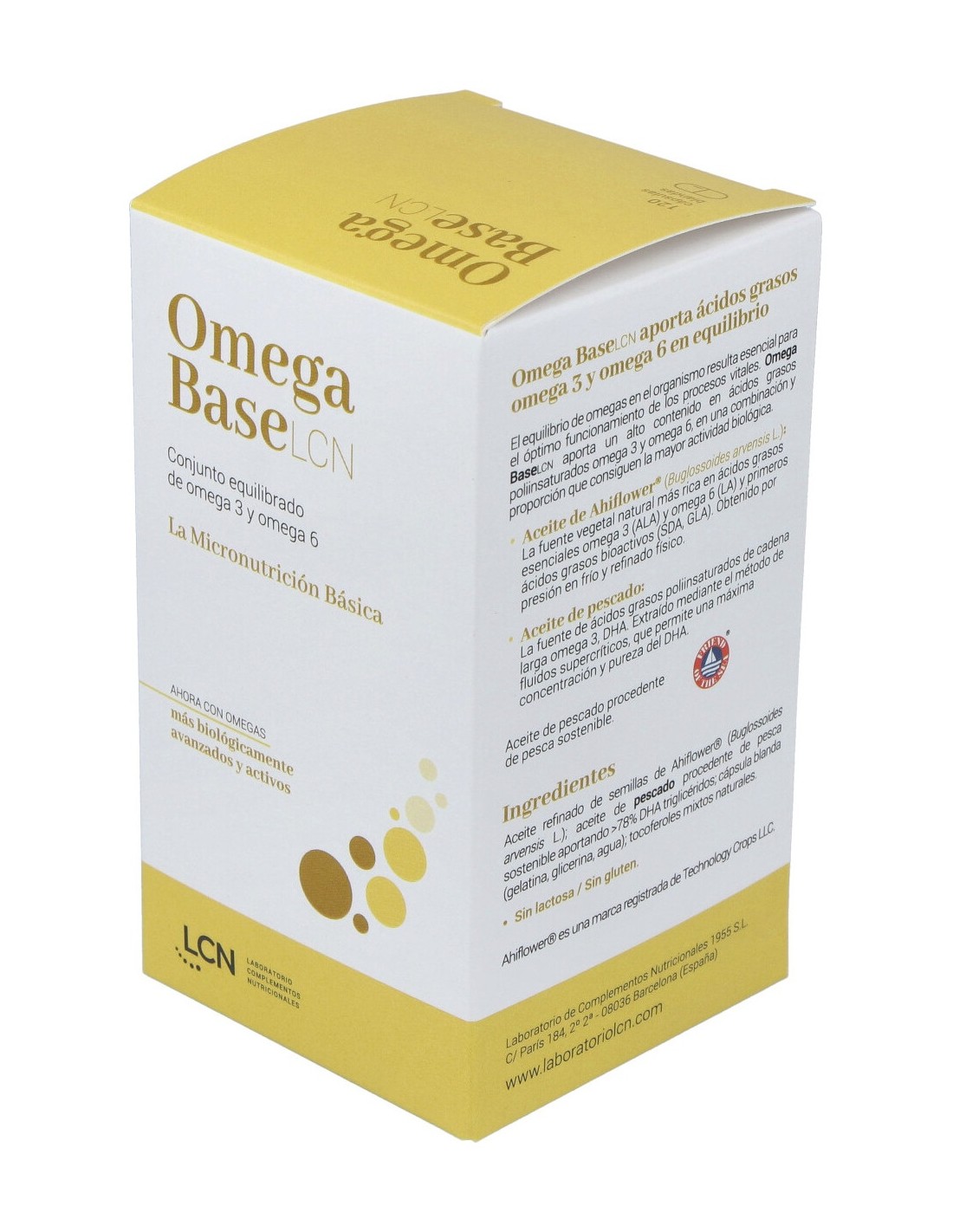 Cn Omega Base Lcn 120 Cápsulas es un complemento alimenticio formulado a base de ácidos grasos omega 3 y omega 6, aceite de chía virgen, aceite de pescado, aceite de onagra vírgen y tocoferoles mixtos naturales como fuente de vitamina E.