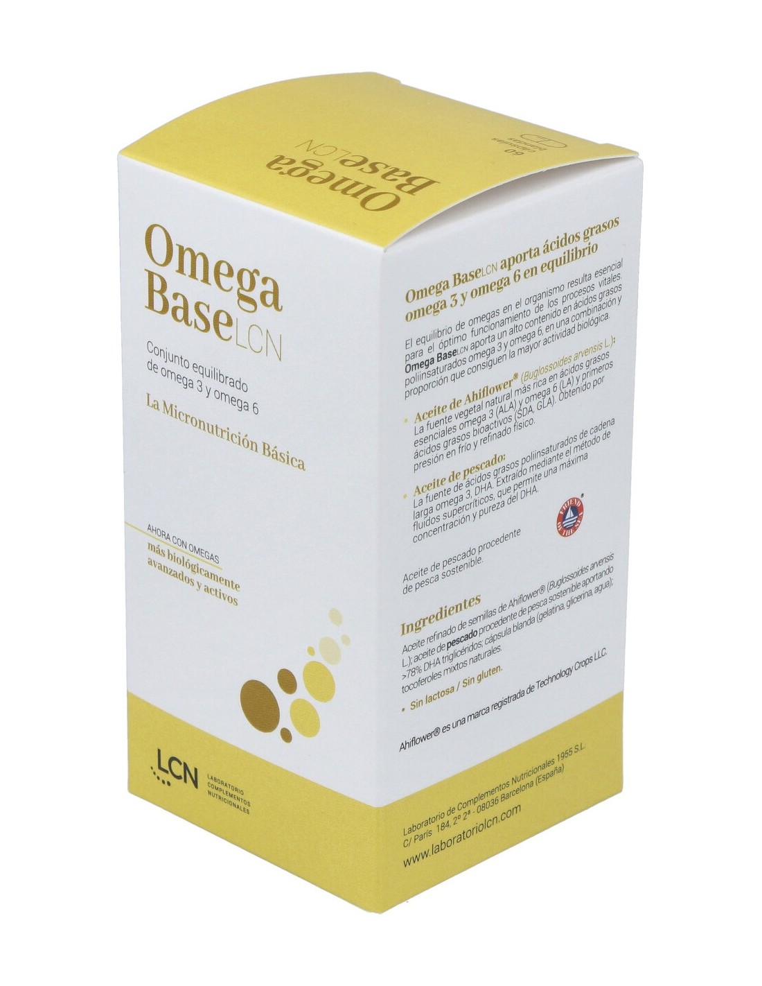 Cn Omega Base Lcn 60 Cápsulas es un complemento alimenticio formulado a base de ácidos grasos omega 3 y omega 6, aceite de chía virgen, aceite de pescado, aceite de onagra vírgen y tocoferoles mixtos naturales como fuente de vitamina E.