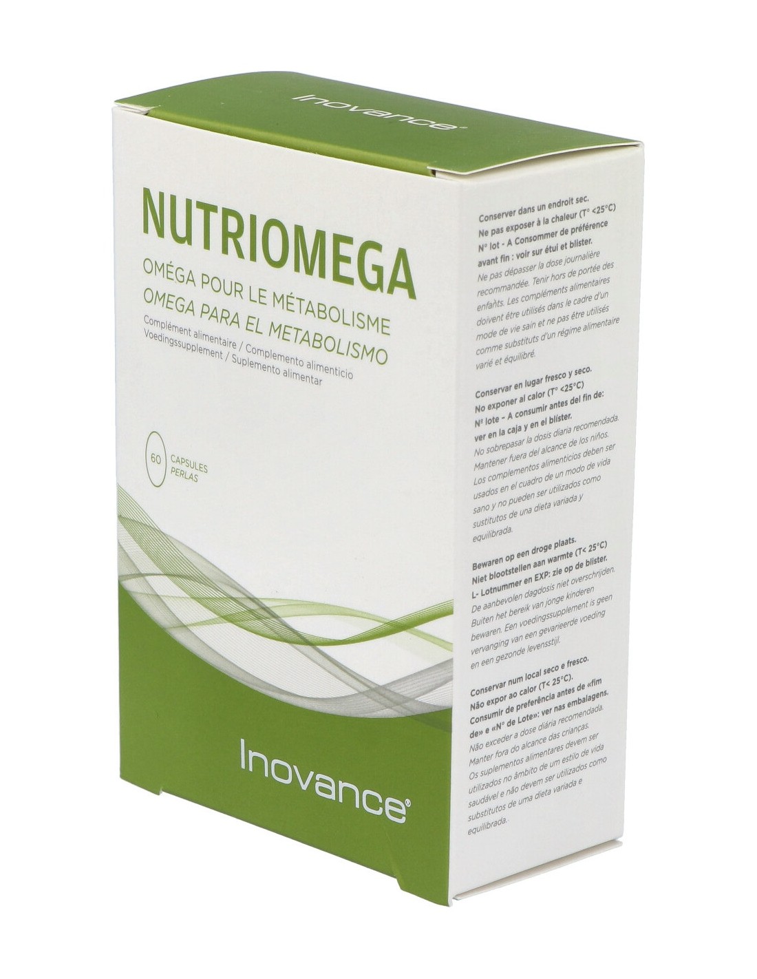 "Inovance Nutriomega 60 Cap es un complemento alimenticio ideal formulado a base de ácidos grasos esenciales Omega3 y Omega6, por lo que es ideal para aquellos adultos que padecen un desequilirio de dichos ácidos.