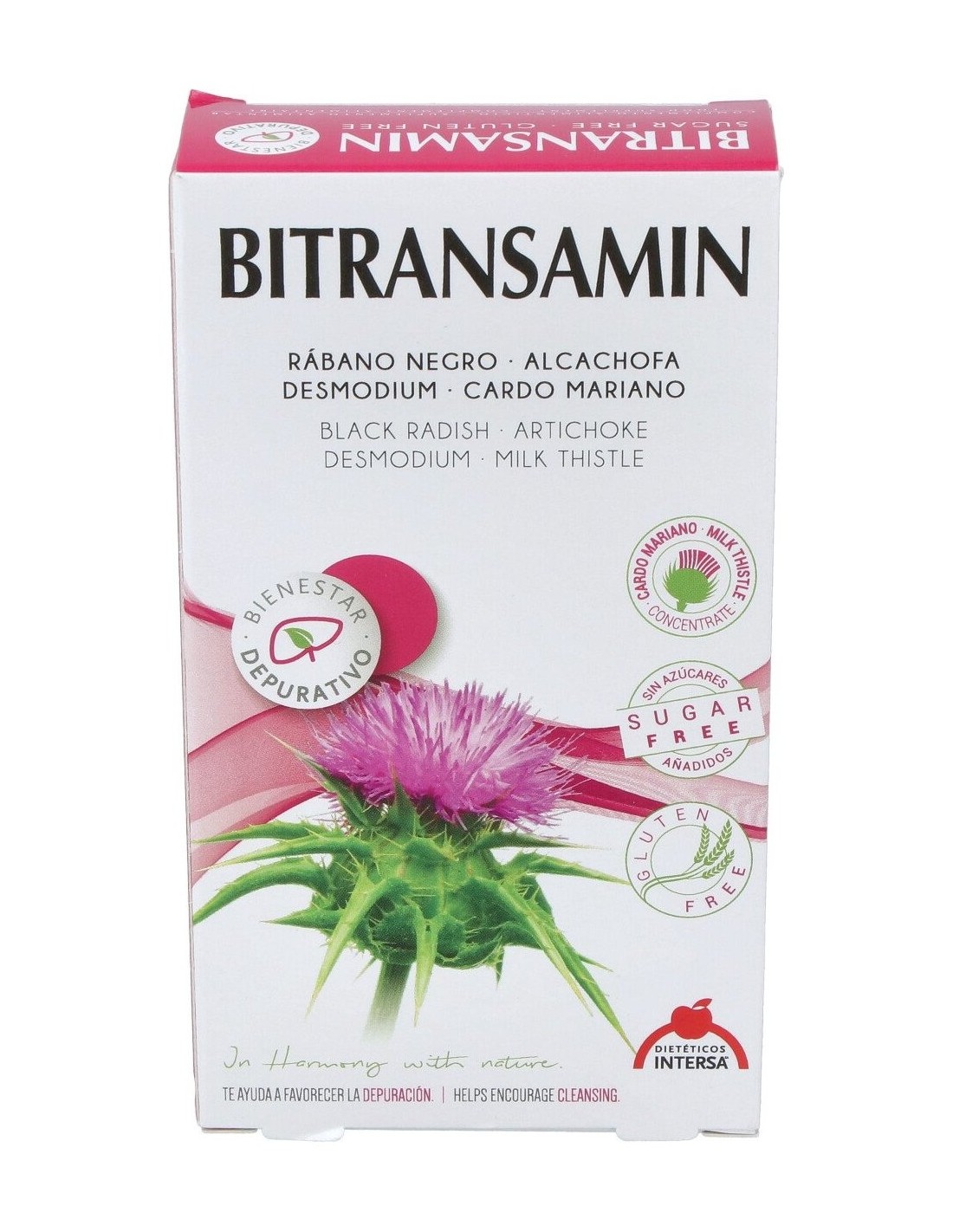 Bitransamin 60cáps es un complemento alimenticio indicado para una gran variedad de afecciones como alteraciones hepáticas y biliares, retención de líquidos, colesterol…