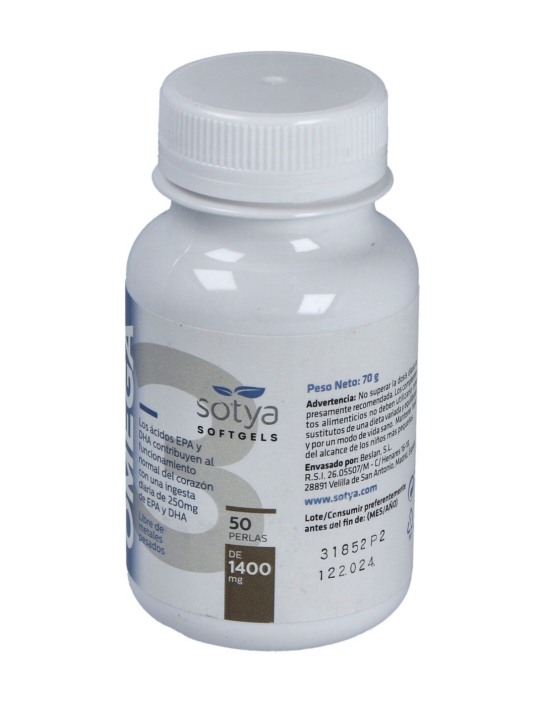 Sotya Omega 3 1400mg son unas perlas que te aportarán todos los ácidos grasos diarios extraídos de peces de agua fría (como el salmón) que necesitas para reducir los niveles de colesterol en sangre ya que da soporte en su metabolismo.