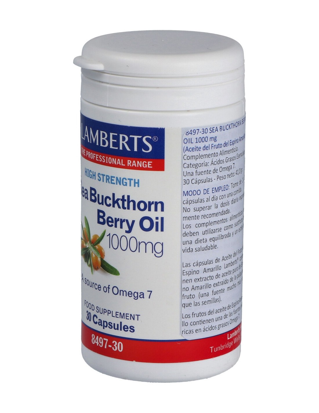 Las bayas de la planta de espino amarillo contienen una de las fuentes más ricas de ácidos grasos Omega 7. Apto para vegetarianos.