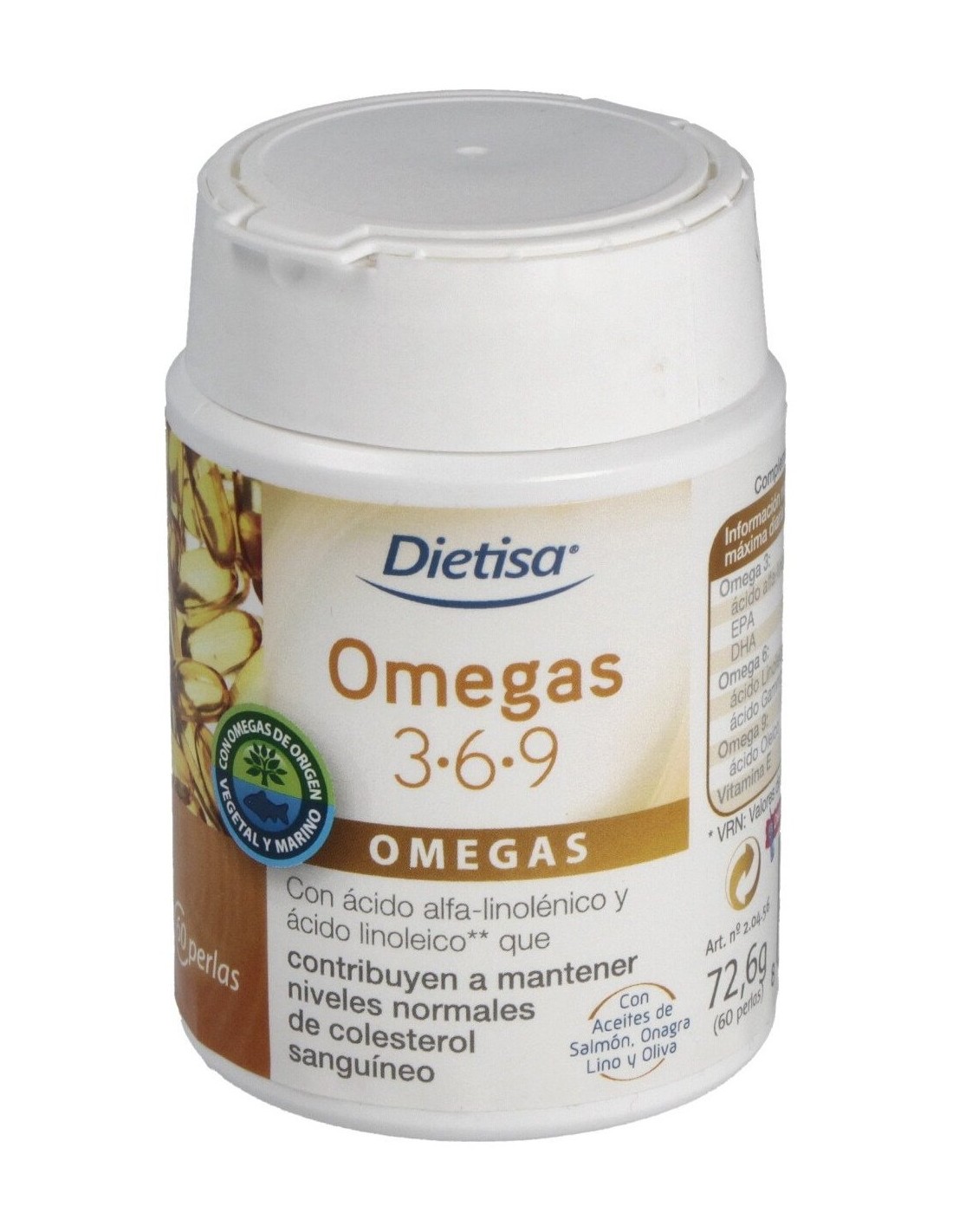 Dietisa Omega 3-6-9 es un complemento alimenticio, formulado a base de ácidos grasos esenciales, que contribuye e mejorar el funcionamiento correcto del corazón. Impide que se formen taponamientos en las arterias que te provoquen colapsos o problemas cardiovasculares.