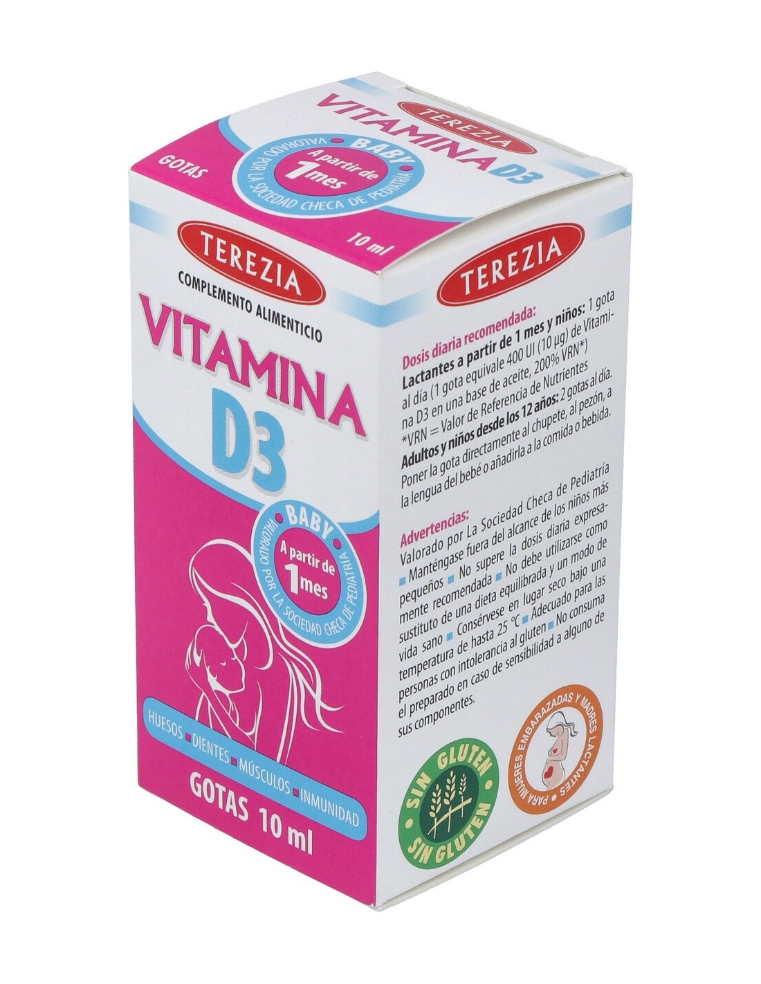 La vitamina D3 contribuye a la absorción y utilización normal del calcio, al mantenimiento de niveles normales de calcio en la sangre y al funcionamiento normal de los músculos y del sistema inmunitario. Además contribuye al mantenimiento de los huesos y dientes en condiciones normales.