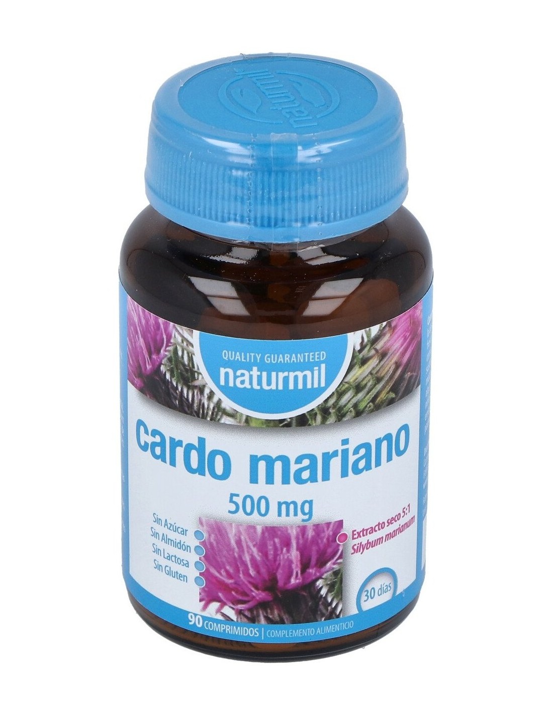 El cardo mariano (Silybum marianum) es una planta que contiene silimarina, una mezcla de diversas sustancias de interés y ampliamente estudiadas para el cuidado digestivo y hepático. También aporta flavonoides con acción antioxidante y ácidos grasos como el linoleico, oleico y palmítico.