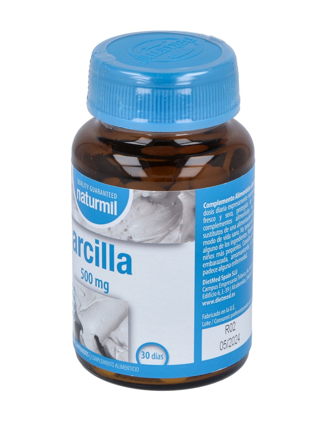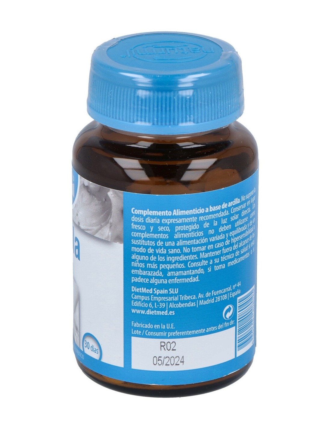 Arcilla, Agente de carga: celulosa microcristalina, antiaglomerantes: fosfato dibásico de calcio anhidro, estearato de magnesio, dióxido de silicio.
