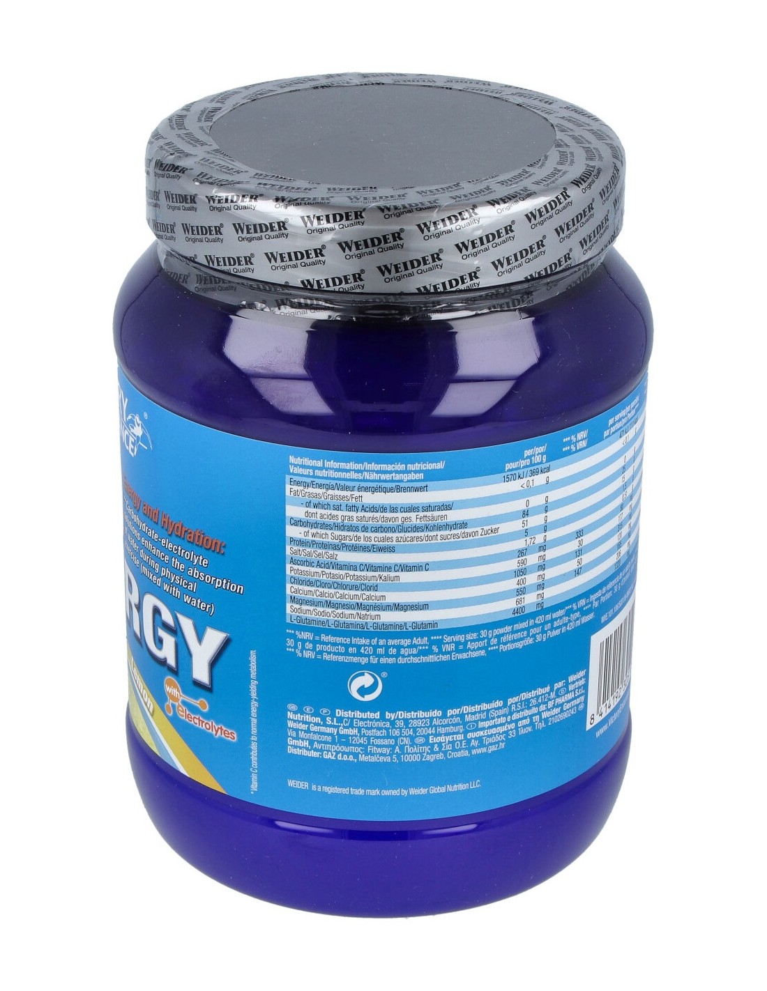 complejo Carbo Optimun ( Dextrosa , Maltodextrina , Fructosa ) , Acidulante ( Ácido Cítrico ) , Mezcla Mineral ( Cloruro de Sodio , Difosfato de Potasio , Hidróxido de Magnesio , Carbonato Cálcico ) , L-Glutamina , Aroma (Aroma de Limón) , Ácido L-Ascórbico , Edulcorante ( Sucralosa ).