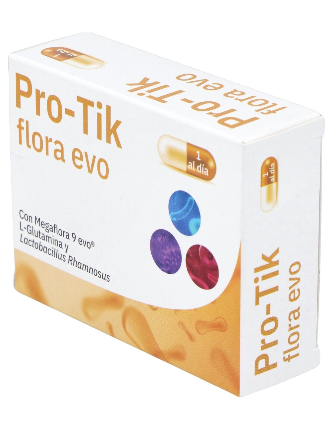 Megaflora 9 evo®, Lactobacillus rhamnosus, maltodextrina y l-glutamina. Cobertura: cápsula de gelatina.