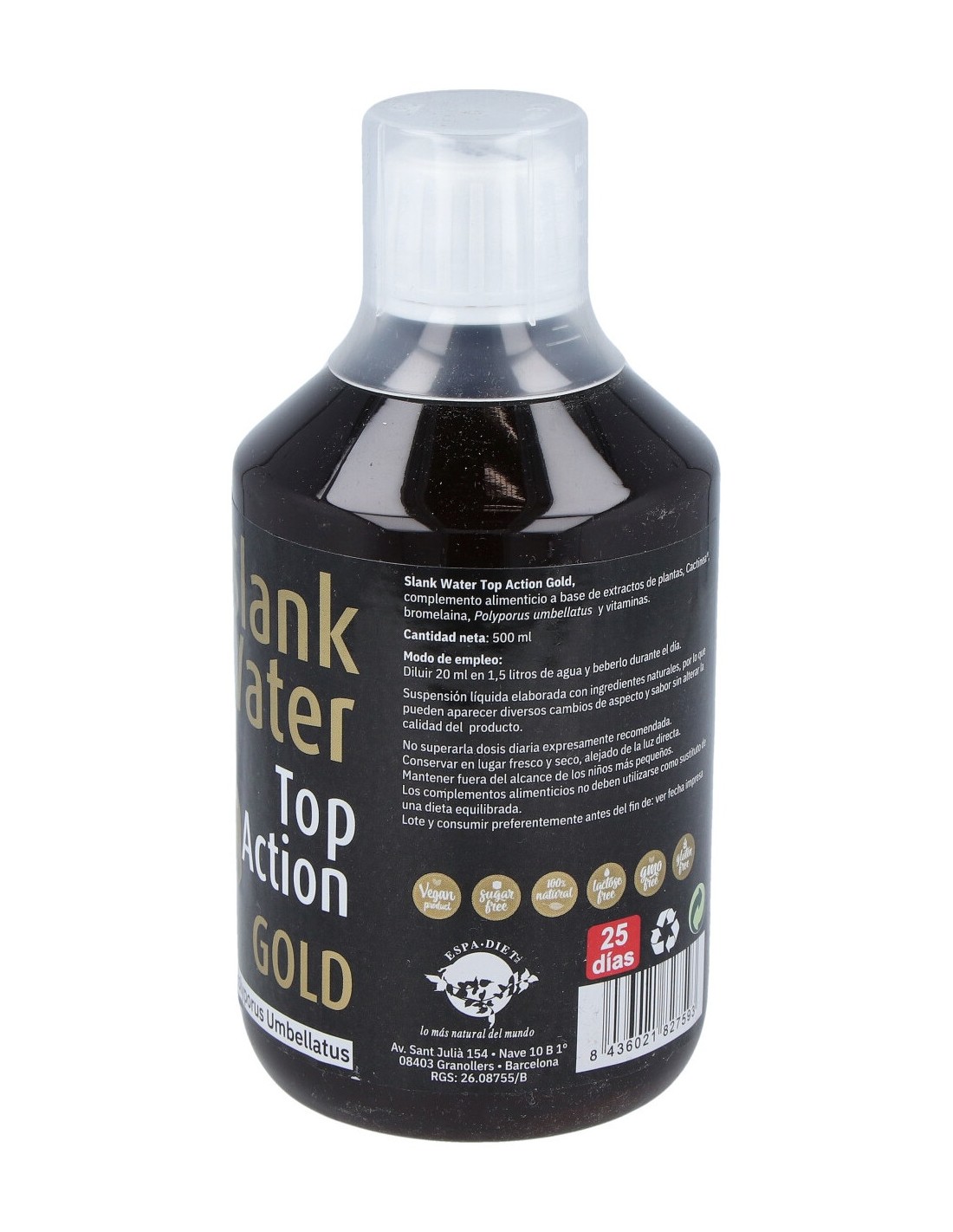 Agua, extractos concentrados de fucus, ortosifón, cola de caballo, y alcachofera, aroma de té verde y de Limón, extractos concentrados de pilosella y café verde, extracto concentrado de Polyporus umbellatus, Cactinea® (Opuntia ficus indica), espesante (goma xantana), conservante (sorbato potásico), ácido L-Ascórbico (Vitamina C), Bromelaína 1.200 GDU/g de actividad proteolítica, extracto hidroalcohólico de fresno, extractos concentrados de abedul, estigmas de maíz y grama, nicotinamida (Vitamina B₃), acetato de DL-alfa-tocoferilo