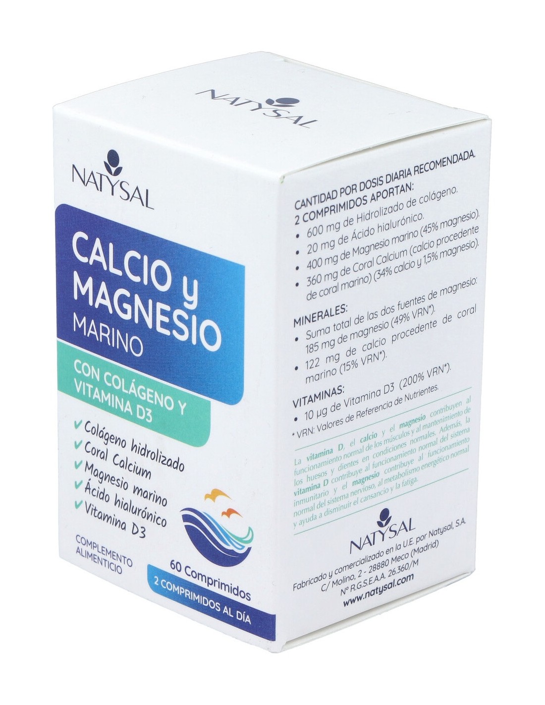 Comprimidos diseñados a base de calcio y magnesio de origen marino que contribuyen a mantener la salud y un correcto funcionamiento de huesos, cartílagos y articulaciones. Su fórmula está enriquecida con ácido hialurónico, vitamina D y colágeno hidrolizado que previene problemas relacionados con el sistema óseo.