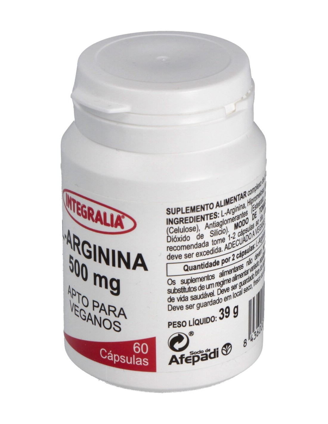 Este complemento alimenticio ha sido realizado por Integralia a base de L-Arginina, por lo que es especialmente apto para veganos. Viene presentado en un envase de 60 cápsulas, en los que cada una de ellas es de 500mg. La L-Arginina es un aminoácido perfecto que ayuda a impulsar la prosperidad del aparato circulatorio. Esto favorece el control de los niveles del colesterol y ayuda a mantener un buen flujo sanguíneo. No se recomienda su uso en los niños más pequeños ni en mujeres que se encuentran en el período del embarazo o lactancia. Al consumir estos aminoácidos para complementar la alimentación, es necesario seguir una dieta equilibrada y variada. Además, es apropiado tener un estilo de vida saludable para que el producto pueda hacer efecto en el organismo. Se recomienda también consultar su uso con un médico especialista.