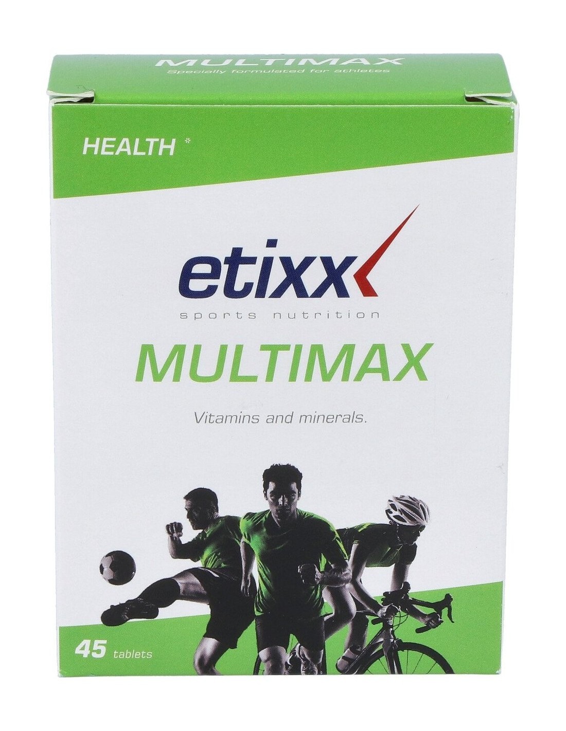 Nuestro organismo necesita de una cantidad determinada de vitaminas y minerales para gozar de una buena salud. Los deportistas llegan a un esfuerzo mayor y por lo tanto, necesitan más vitaminas y minerales.Etixx Multimax es un producto de que contiene una amplia variedad de vitaminas (A, B, C, D, B8 y B11) y minerales (magnesio, zinc, manganeso, calcio, hierro, selenio, yodo, cromo y cobre).¡El complemento diario que te ayudará a mantenerte sano!Modo de empleo