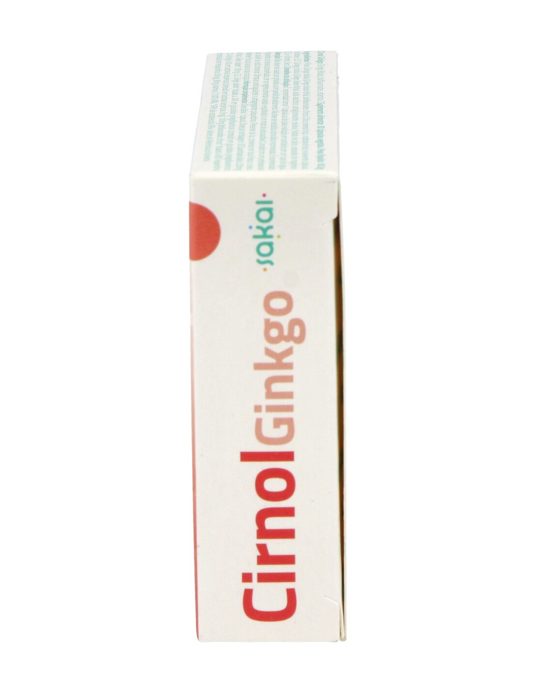 Sakai Cirnol-Ginkgo 30cáps es un complemento alimenticio a base de extracto de ginkgo biloba altamente titulado, bioflavonoides y vitamina C, este suplemento contribuye a la formación normal de colágeno para el funcionamiento normal de los vasos sanguíneos.