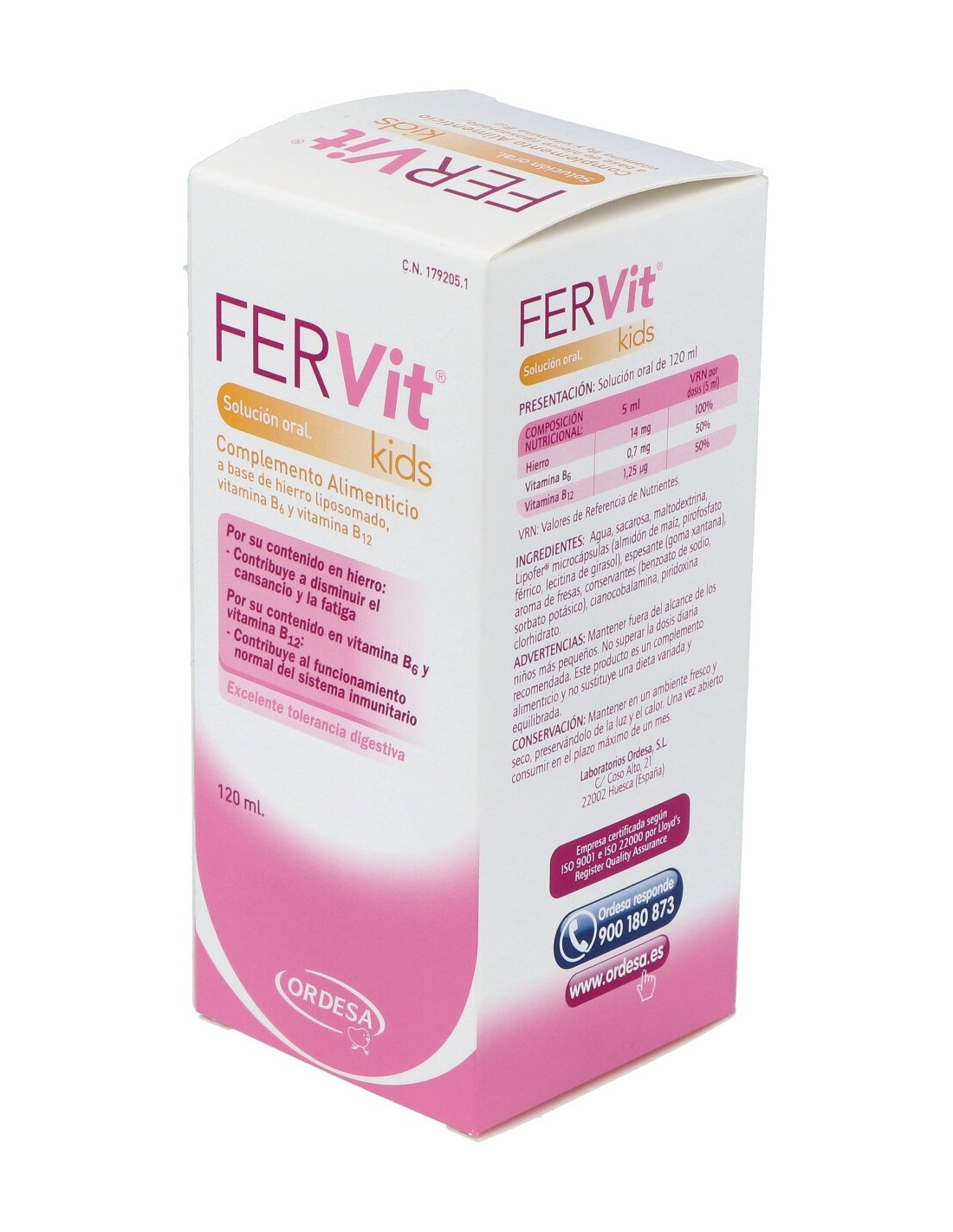 Agua, sacarosa, maltodextrina, Lipofer® (almidón de maíz, pirofosfato férrico, lecitina de girasol), goma xantana (espesante), aroma de fresas, benzoato de sodio y sorbato potásico (Conservantes), piridoxina clorhidrato, cianocobalamina.