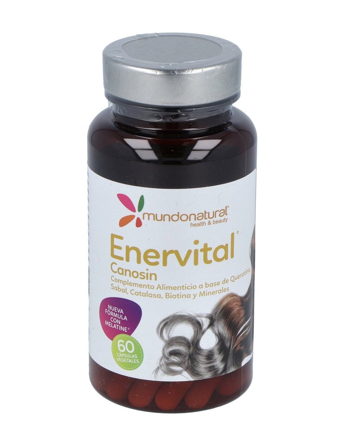 Producto que evita la aparición de canas en el cabello, refuerza su color natural, además de tener una potente acción antioxidante. Es un suplemento alimentario a base de Queratina, Sabal, Catalasa, Biotina y minerales. Contiene Melatyne® y está recomendado para fortalecer la melanogénesis, recobrando el color natural del pelo. Regula el flujo de testosterona a nivel capilar, siendo conveniente para prevenir la caída de cabello además brinda protección hacia los tejidos corporales y combate el efecto de los radicales libres sobre el organismo.