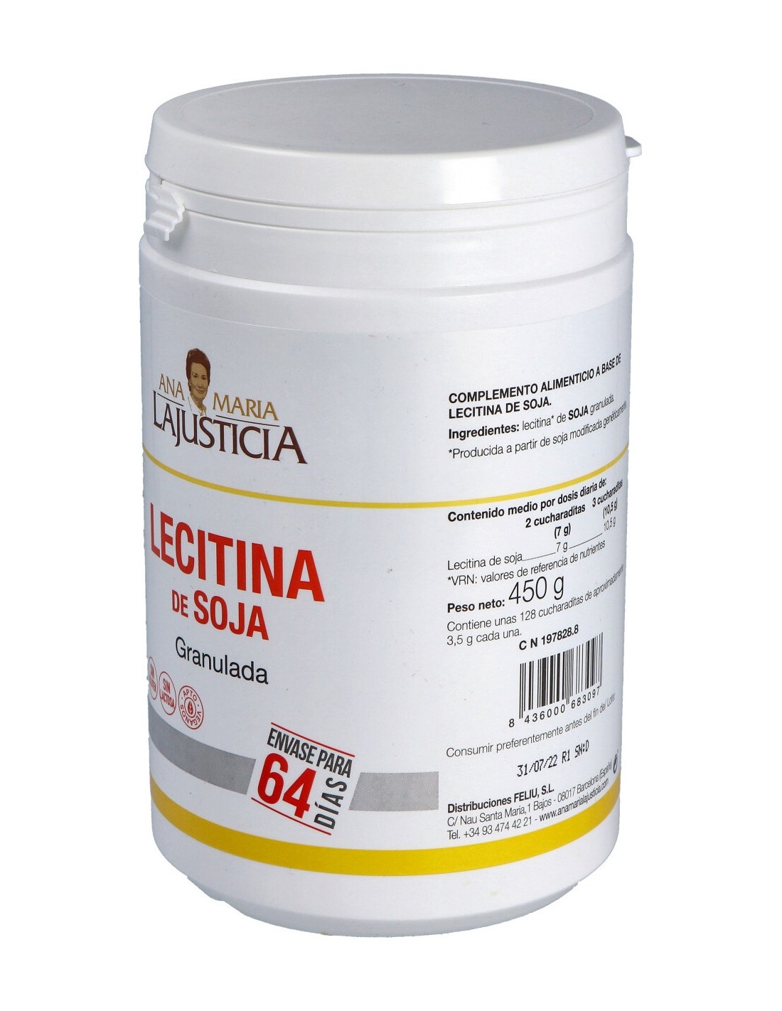 Complemento alimenticio a base de Lecitina de Soja, un fosfolípido que ayuda a conseguir más flexibilidad en las membranas, contribuyendo a frenar los efectos nocivos de la oxidación celular; ayuda a conducir el colesterol hasta el hígado para ayudar a reducir los niveles en sangre; y mejora la digestión y dispersión de las grasas por la sangre, evitando su acumulación. Además aporta fósforo y colina.