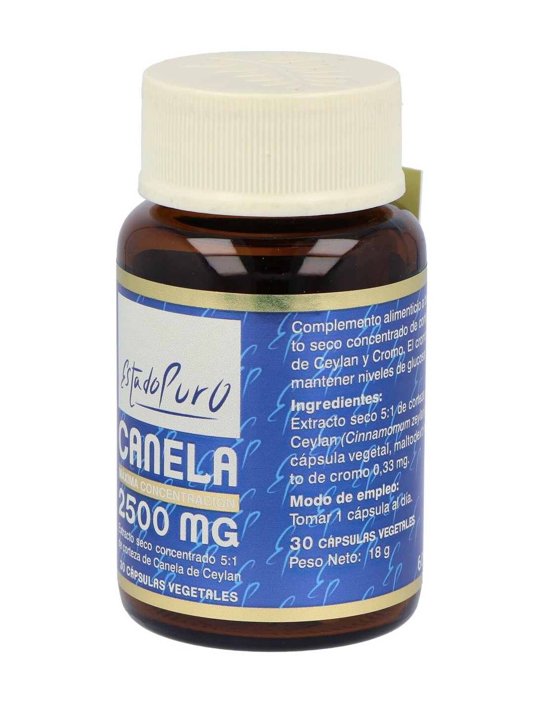 Extracto seco 5:1 de corteza de Canela de Ceylan (Equivalentes a 2500 mg de polvo de corteza de Canela)...........................500 mg