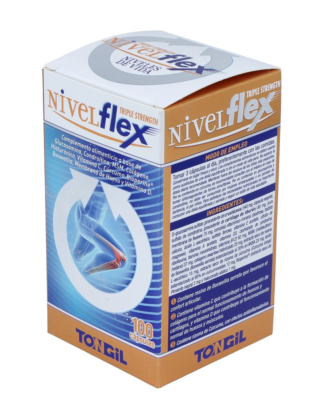 Tongil Nivelflex 100caps es un complemento alimenticio a base de glucosamina, condroitina, MSM, colágeno, hialurónico, vitamina C, cúrcuma y vitamina D, entre otros nutrientes, que ayuda a mantener la buena salud de las articulaciones.