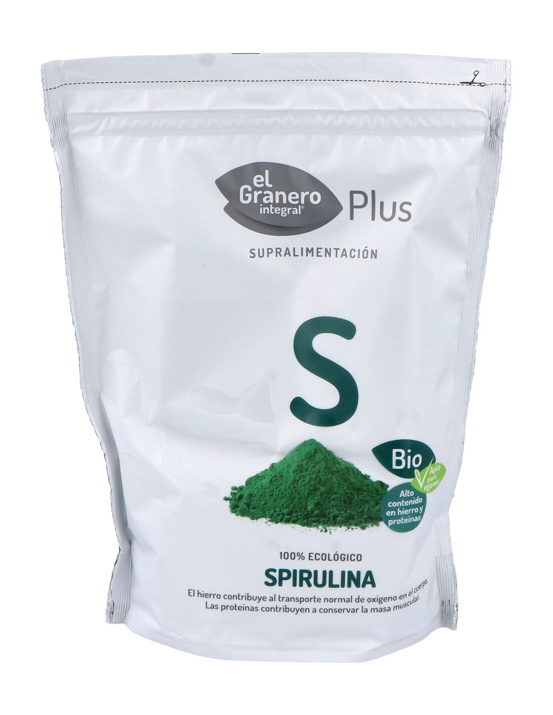 Espirulina natural en polvo de Granero Integral. Contiene 200 gramos de producto en el empaque. Mantiene sus beneficios naturales gracias al cultivo 100% ecológico. Es una fuente importante de aminoácidos esenciales que promueven los efectos duraderos de la vitamina A en el cuerpo. Contribuye con altas cantidades de proteínas esenciales para el consumo diario, manteniendo niveles saludables de masa muscular. Contribuye a la absorción eficaz de nutrientes y minerales en su composición. Recomendado para usuarios bajo un régimen alimenticio basado en el consumo de productos orgánicos. Ideal para niños en crecimiento, personas de la tercera edad y deportistas. Mantener fuera del alcance de los niños. No es recomendable ingerir en dosis superiores a las indicadas. En caso de presentar reacciones adversas a las esperadas, se sugiere consultar con el médico o nutricionista de confianza.