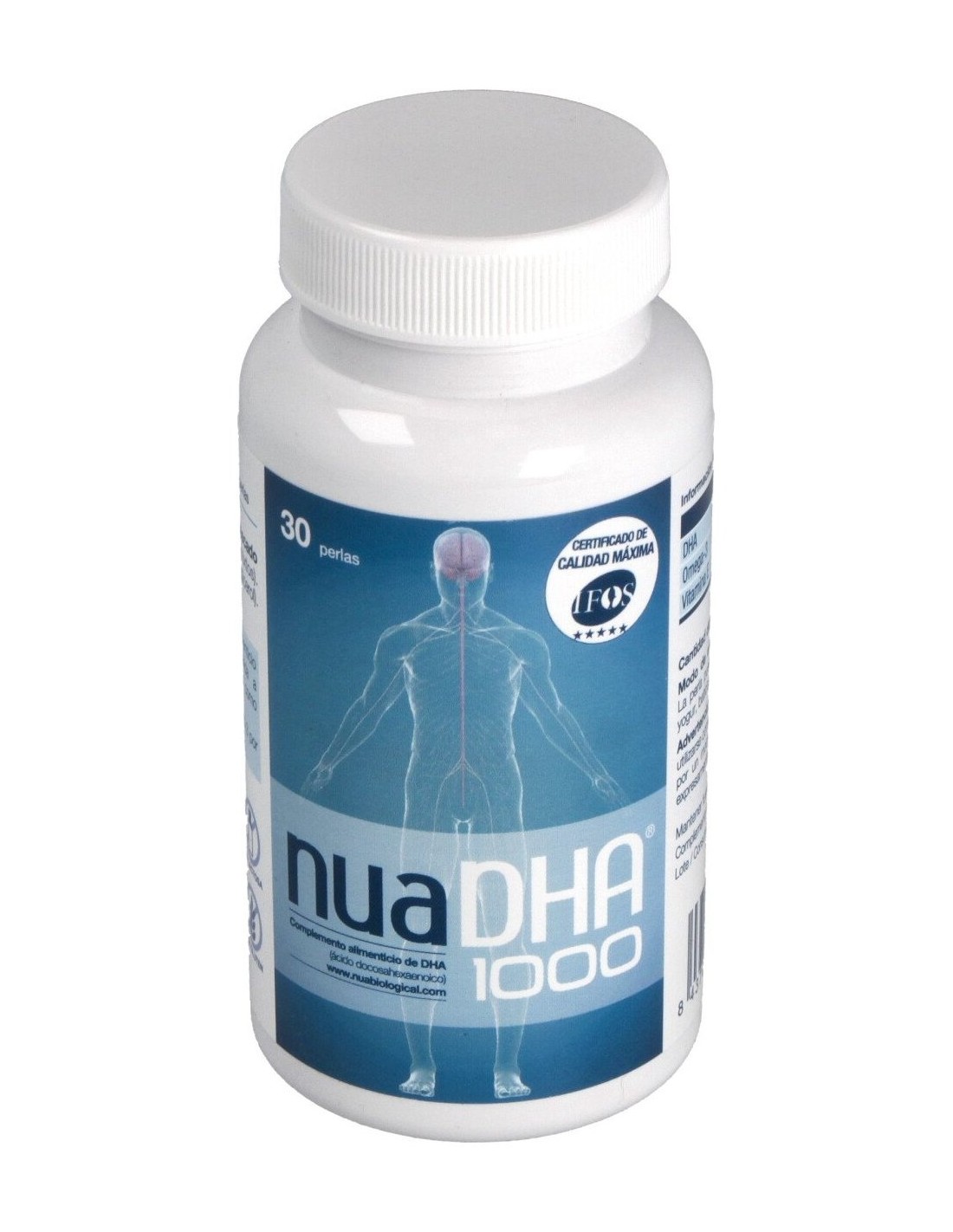 Complemento alimenticio muy puro y concentrado a base de omega-3 (procedente de pescado). Una perla de NuaDHA 1000 contiene aprox. 90% de omega-3, de los cuales más de un 85% son DHA.