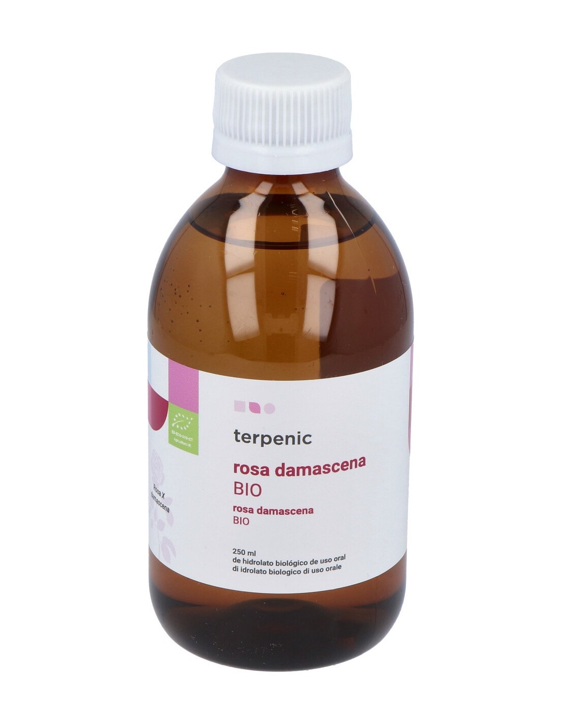 100% agua de rosa damascena bio, obtenido por la destilación de plantas aromáticas.