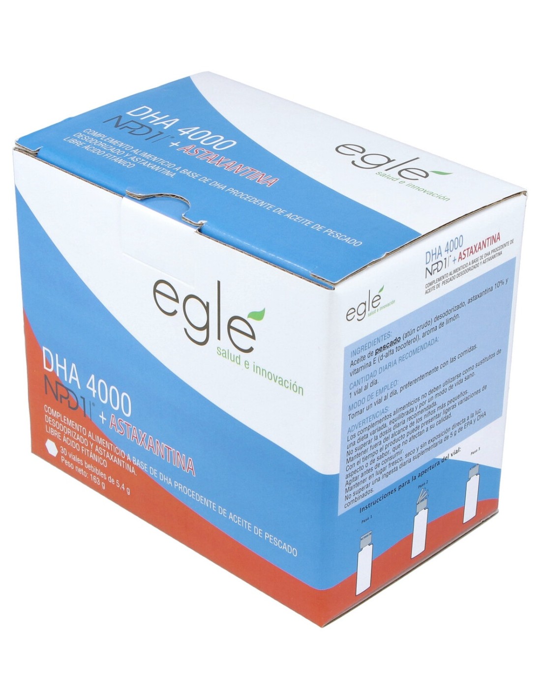 Complemento alimenticio a base de DHA procedente de aceite de pescado desodorizado astaxantia. NPD1 DHA 4000 + Astaxantina de Eglé aporta aceite altamente purificado de atún con una gran concentración de ácido graso omega 3 DHA.