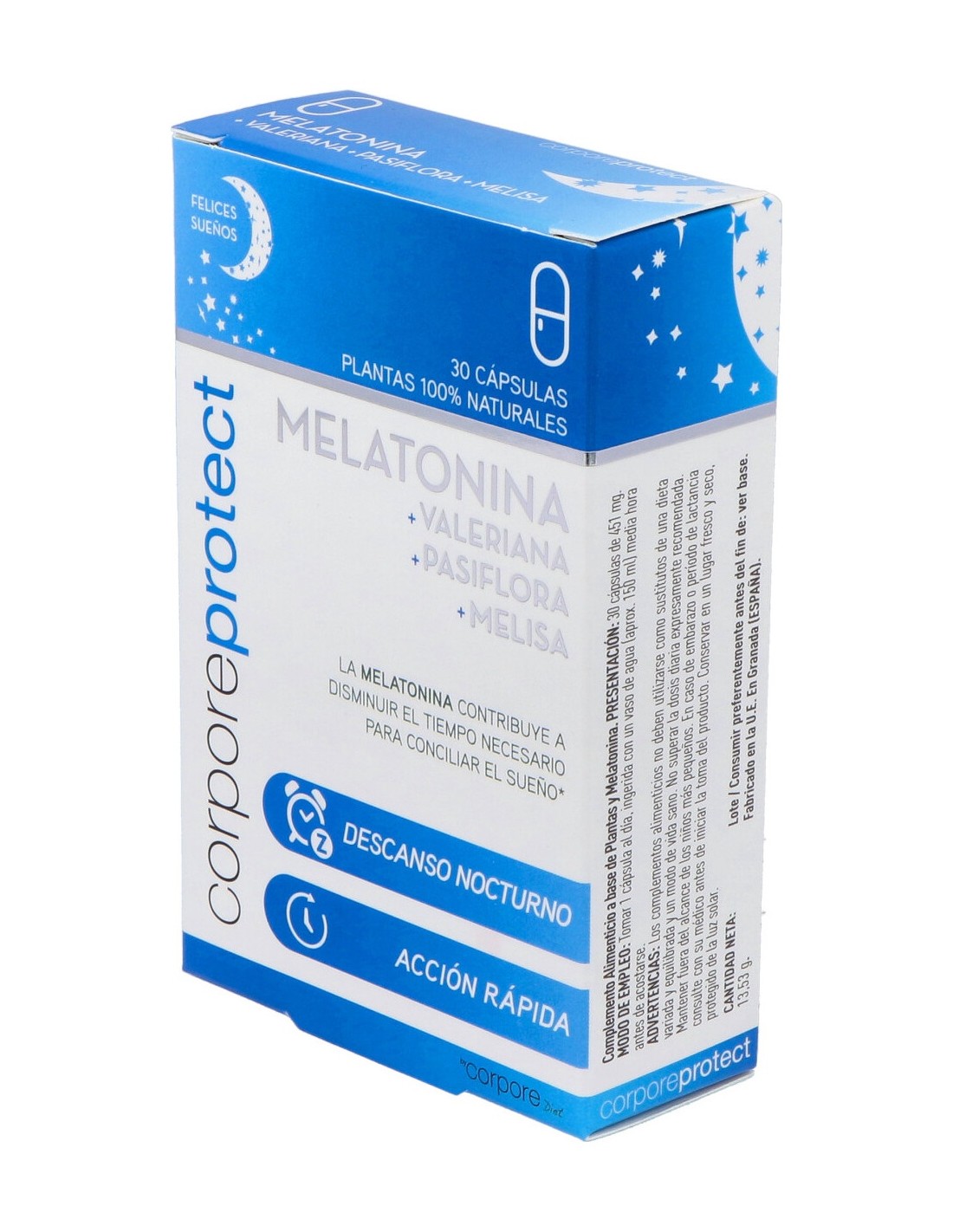 La Melatonina de Corpore Protect está elaborada para poder tratar los trastornos del sueño como el insomnio y en desórdenes del sueño que han estado causados por viajes largos, como el Jet Lag. La Melatonina es una hormona que nuestro organismo produce de forma natural, esta hormona se produce de noche y en reacción con la oscuridad, de manera que nos ayuda a regular los ciclos del descanso.