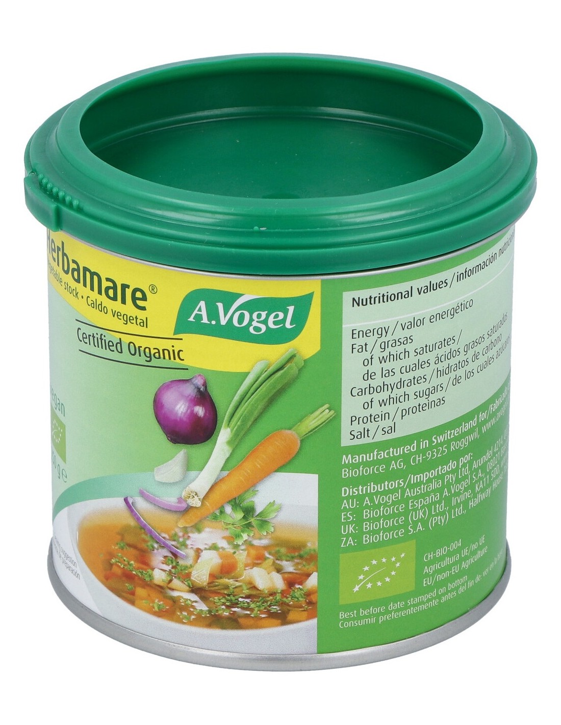 Sal marina sin refinar 48,8%, aceites vegetales (palma*, girasol), maltodextrina* (de maíz), azúcar de caña integral*, extracto de levadura*, vegetales (perejil*, zanahorias*,chirivías*, puerro *, cebollas*), extracto de achicoria*, especias (levístico*, cúrcuma*, ajo*, macis*), hongo shiitake*.