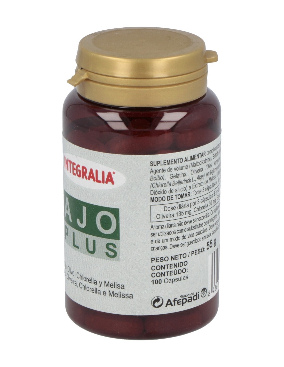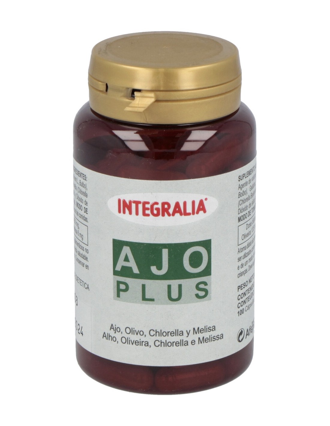Es un complemento alimenticio compuesto por cuatro ingredientes con importantes cualidades. El ajo es un antibiótico natural y su contenido en alicina lo convierte en un buen aliado para mejorar la circulación y regular el colesterol. Aparte, es un buen antioxidante. El olivo actúa como vasodilatador. La chlorella, además de disminuir las toxinas del organismo, es una importante fuente de proteínas, vitaminas y minerales. La melisa relaja el sistema nervioso y es idónea en situaciones que provoquen nerviosismo o estrés. Integralia lo recomienda a personas que deban regular la tensión, el colesterol y los triglicéridos, problemas en las articulaciones, circulación deficiente o deseen prevenir infecciones bacterianas o de hongos. La dosis recomendada son tres cápsulas diarias y no se han descrito contraindicaciones. Debe mantenerse fuera del alcance de los niños pequeños.