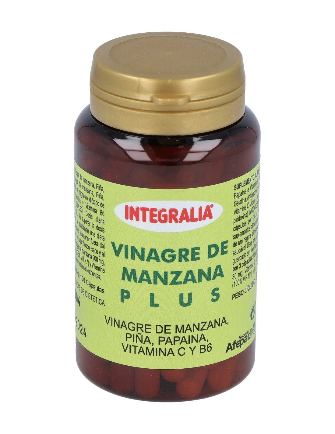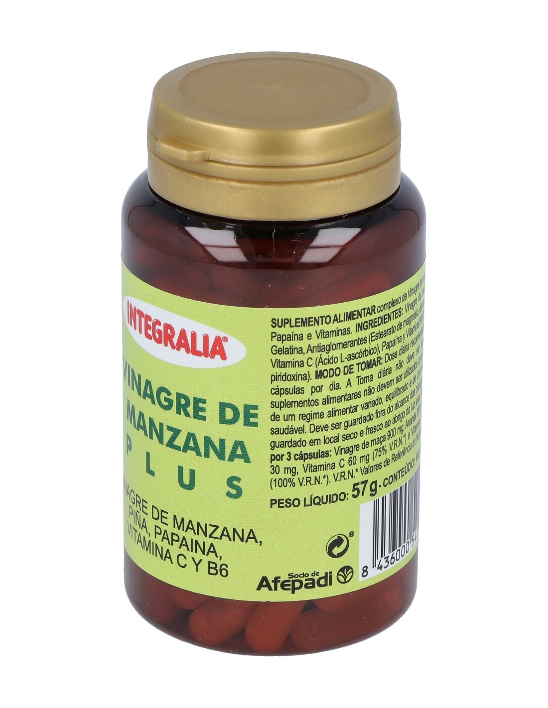 Complemento nutricional de Integralia a base de vinagre de manzana y piña. Este producto natural de Integralia contribuye al adelgazamiento gracias a la propiedad quemagrasa que caracteriza al vinagre de manzana. Además, el vinagre de manzana posee también propiedades laxantes, diuréticas y depurativas. La piña, por su parte, ofrece propiedades antiinflamatorias y antiedematosas que favorecen la función sanguínea. Este producto facilita la fluidez de la grasa evitando su acumulación.