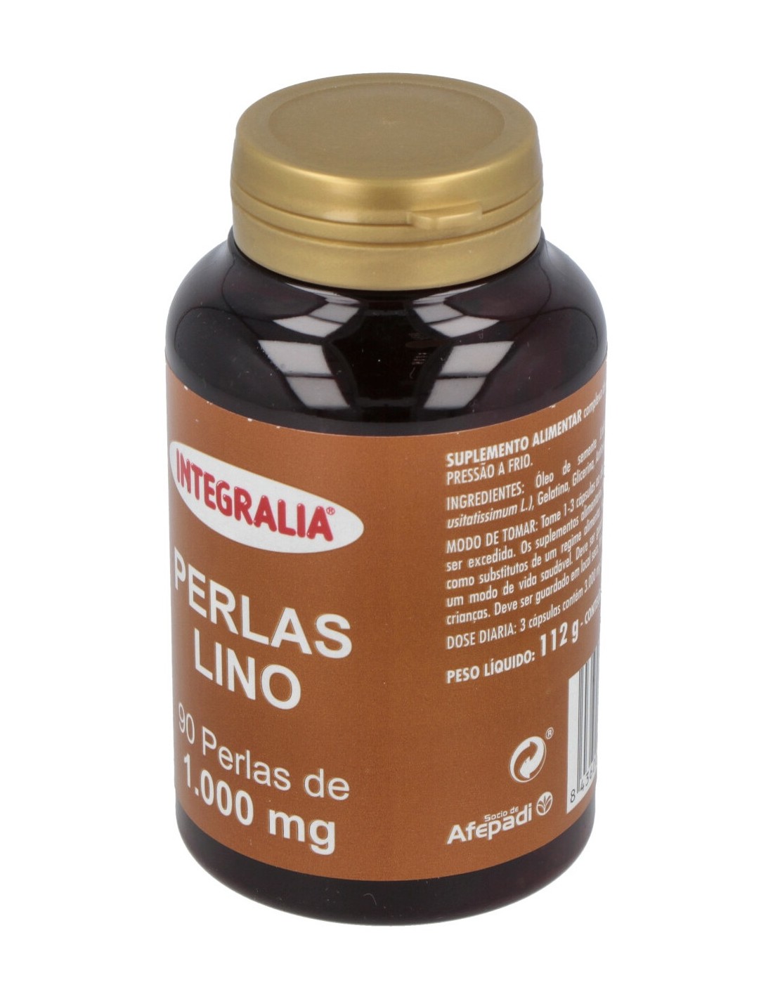 Comprimidos prensados de aceite de semillas de lino, de la marca Integralia. Este complemento alimenticio tiene como ingredientes fundamentales ácidos grasos ricos en omega 3 y omega 6, los cuales ayudan a mantener la piel, el corazón y un movimiento articular más sano. Además, las semillas de lino son una fuente vegetal con abundante ácido alfa-linolénico. Por eso contribuyen con la regeneración de la flora intestinal, ayudando a apaciguar los excesos de grasa. También facilitan una menor absorción de las mismas por el intestino. Cada una de sus píldoras está prensada en frío con la intención de retener eficientemente sus cualidades nutritivas. Se recomienda tomar de 1 a 3 perlas al día. Debe colocar el recipiente bien tapado en un lugar fresco, sin humedad y protegido de la luz. Manténgase alejado del alcance de los niños.