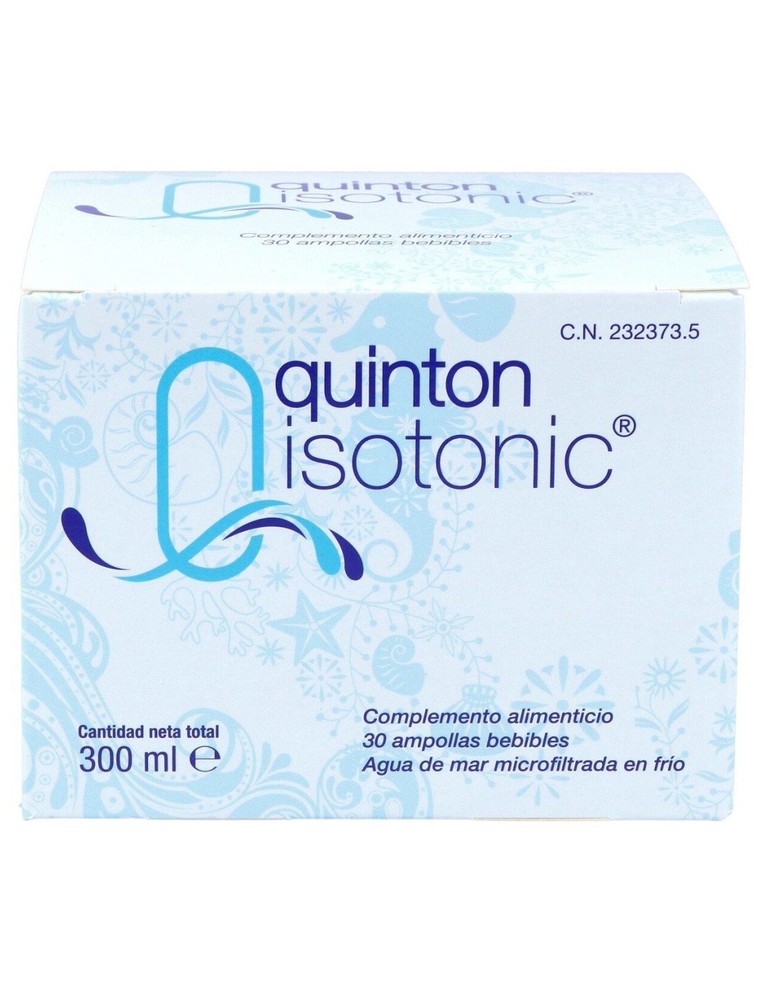 Agua de mar oceánica total, natural, reducida a la isotonía fisiológica y preparada según las indicaciones del fisiólogo y biólogo René Quinton. Por su contenido en cloruro contribuye a una digestión normal mediante la producción de ácido clorhídrico en el estómago.