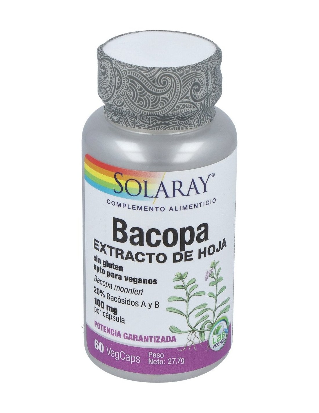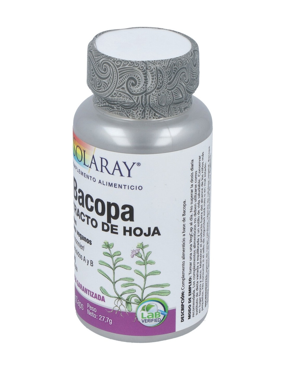 Bacopa (Bacopa monnieri) (extracto de hoja) (garantiza [20%] bacósodios A&B), Bacopa (Bacopa monnieri) (hoja), cápsula de celulosa vegetal, antiaglomerante: estearato de magnesio y sílice.