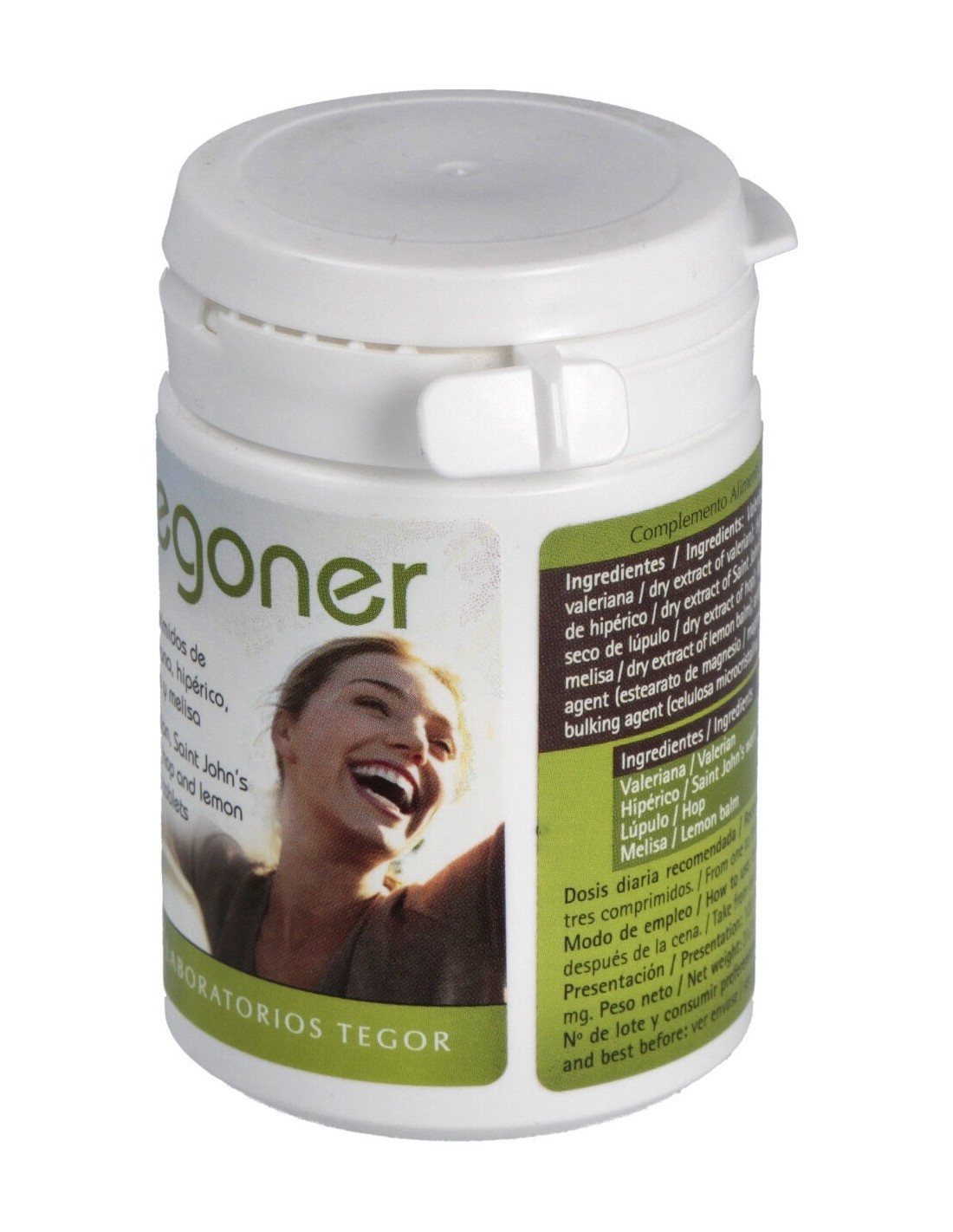 Valeriana officinalis auct. non L. (raíz de valeriana), 67 mg: Hypericum perforatum L. (hipérico), 67 mg: Humulus lupulus L. (lúpulo), 50 mg: Melissa officinalis L. (hojas de melisa), 24,52 mg: excipientes, c.s.p.