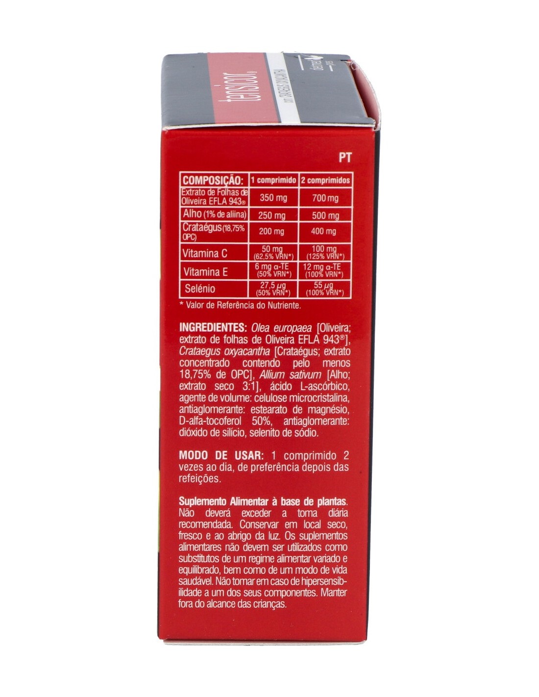 Olea europaea (Olivo: extracto de hojas de Olivo EFLA 943®), Crataegus oxyacantha (Espino blanco: extracto concentrado conteniendo al menos 18,75% de OPC), Allium sativum (Ajo: extracto seco 3:1), ácido L-ascórbico, agente de carga: celulosa microcristalina, antiaglomerante: estearato de magnesio, D-alfa-tocoferol 50%, antiaglomerante: dióxido de silicio, selenito de sodio.