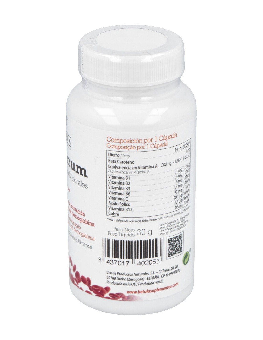 Complemento alimenticio que ayuda a subir niveles de hierro en casos de anemia o de ferritina baja. Elaborado a base de hierro en forma de gluconato, asimilable y que evita problemas gastrointestinales, con vitaminas y minerales que optimizan su absorción, movilización y utilización corporal. Además combate la caída de cabello asociada a bajos niveles de ferritina. Apto para veganos y embarazadas.