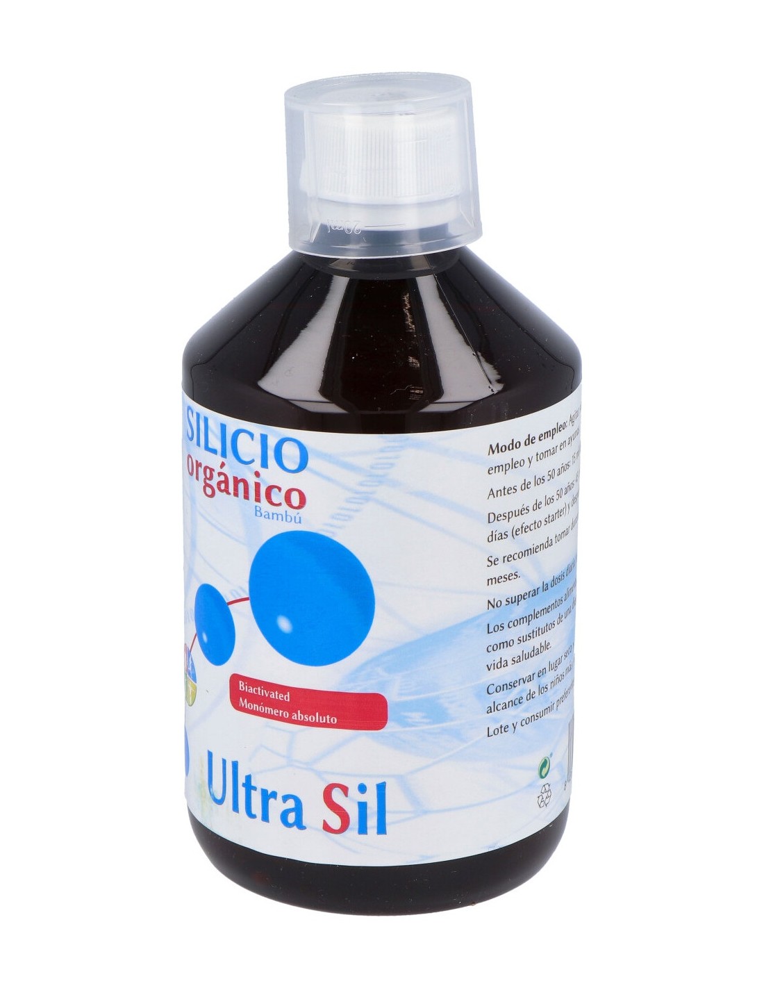 Agua, silicio líquido (ácido silícico gel, extracto de cola de caballo, extracto de romero), extracto seco de bambú rico en sílica, conservantes ( benzoato potásico y sorbato potásico), aroma de vainilla y acidulante (ácido cítrico).