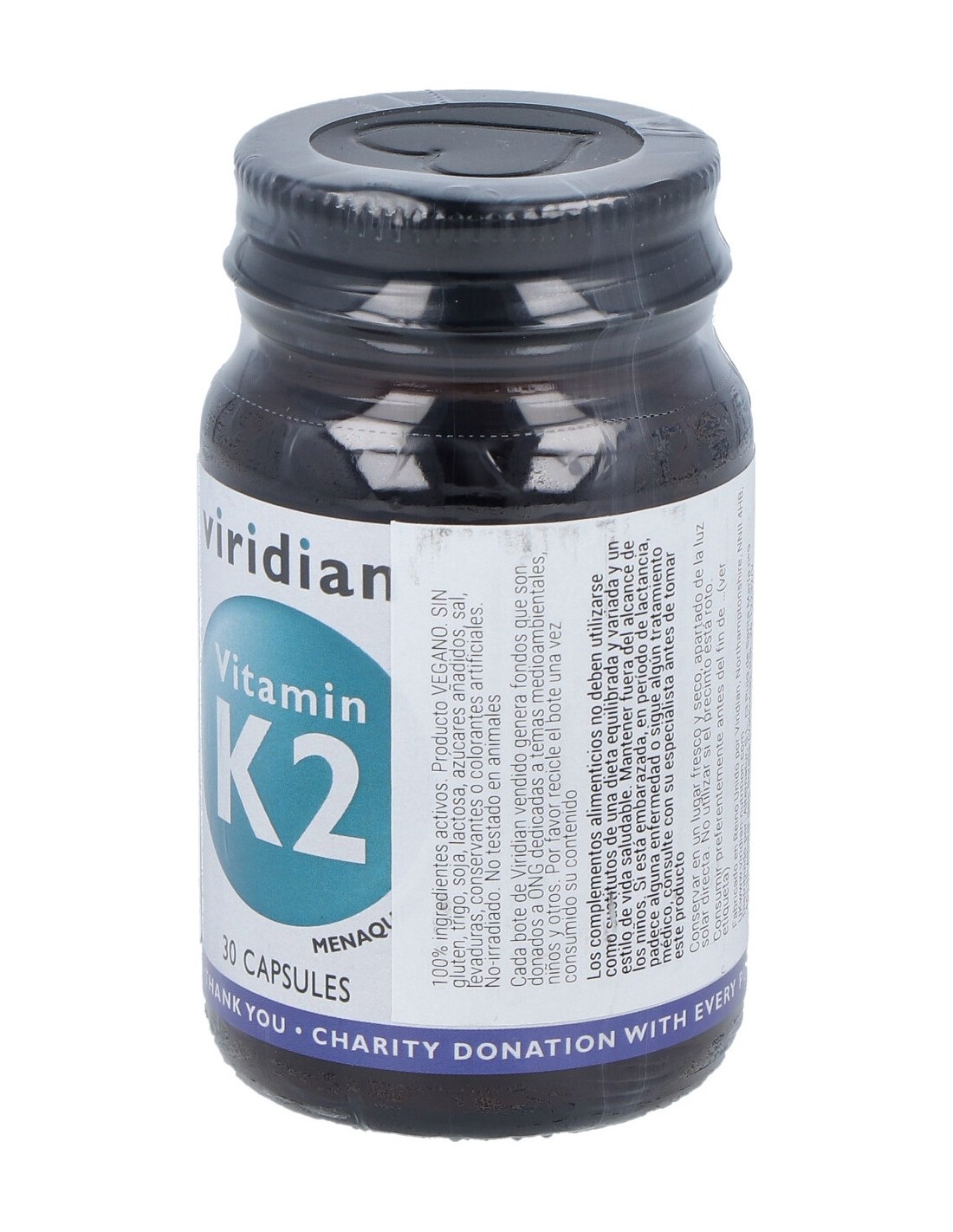 La vitamina K contribuye a la normal coagulación sanguínea. La vitamina K2 de Viridian Nutrition se extrae en Italia de Bacillus subtilis natto en un proceso único y garantizado no probado en animales. Producto vegano y Kosher.