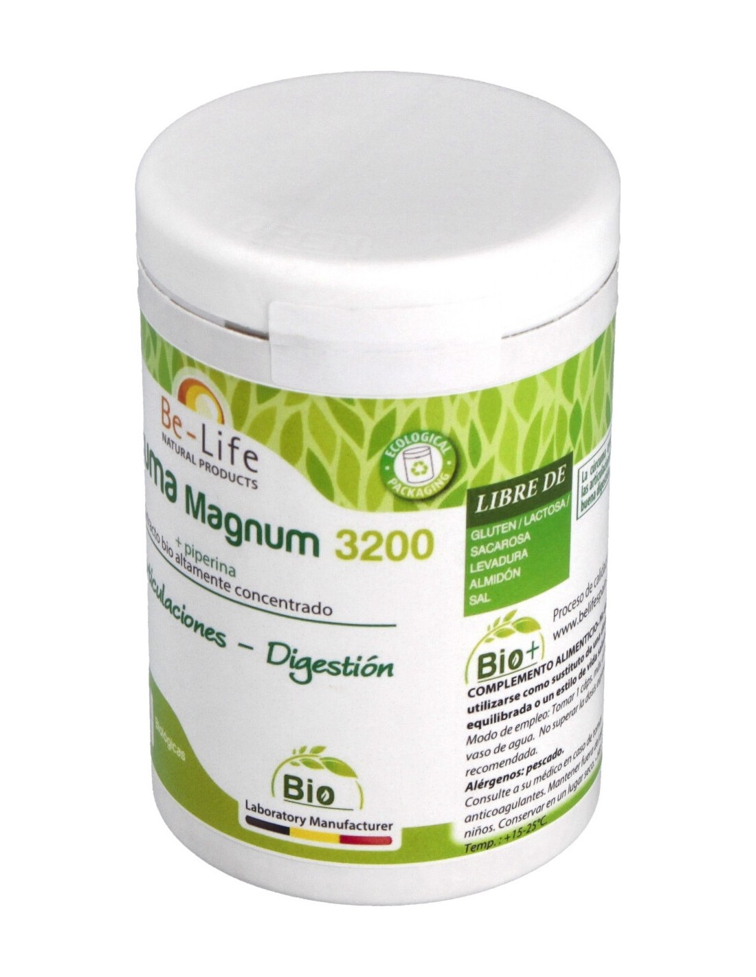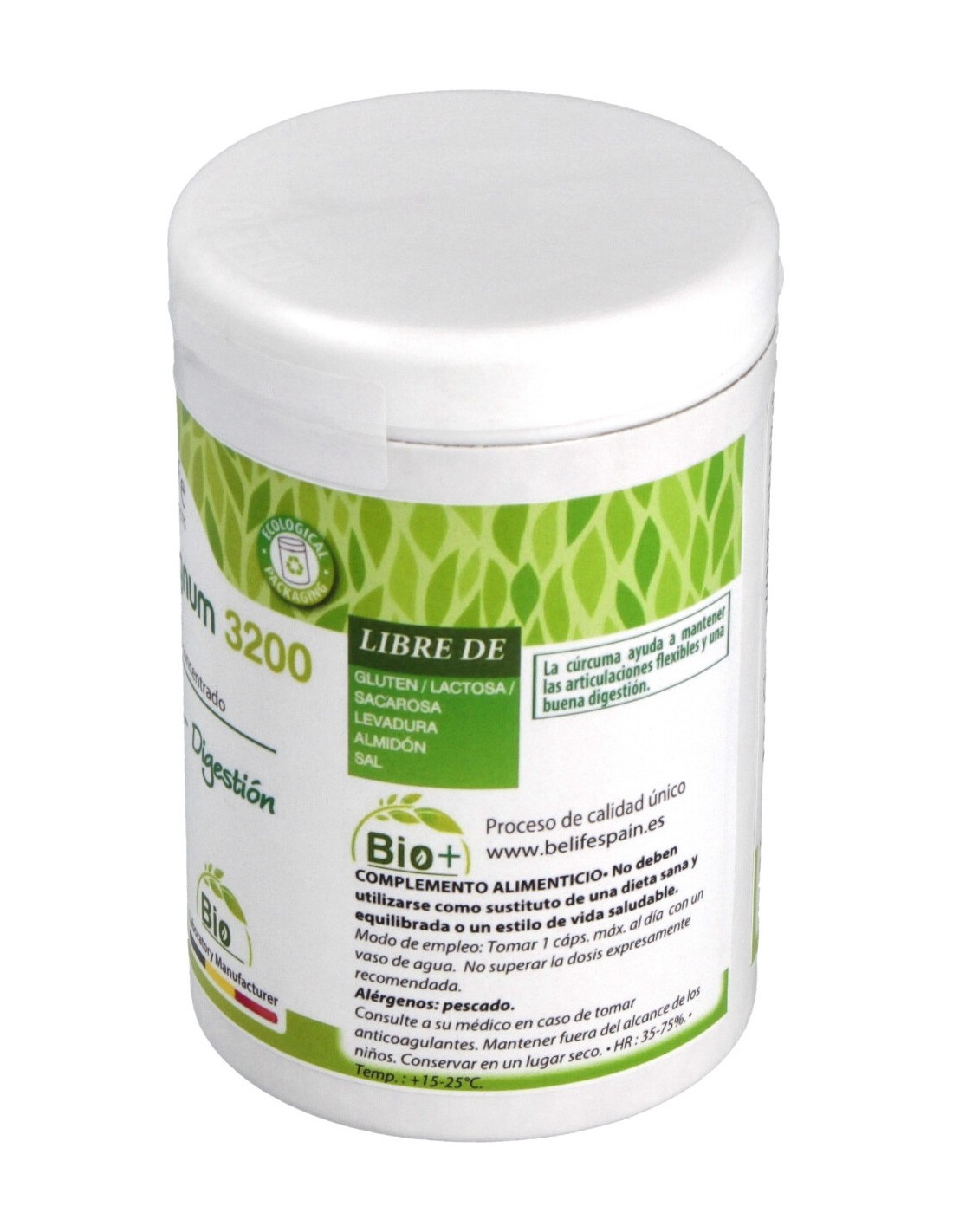 Estimula la actividad de las enzimas digestivas, actúa sobre las articulaciones y tiene acción antioxidante. Envase ecológico.