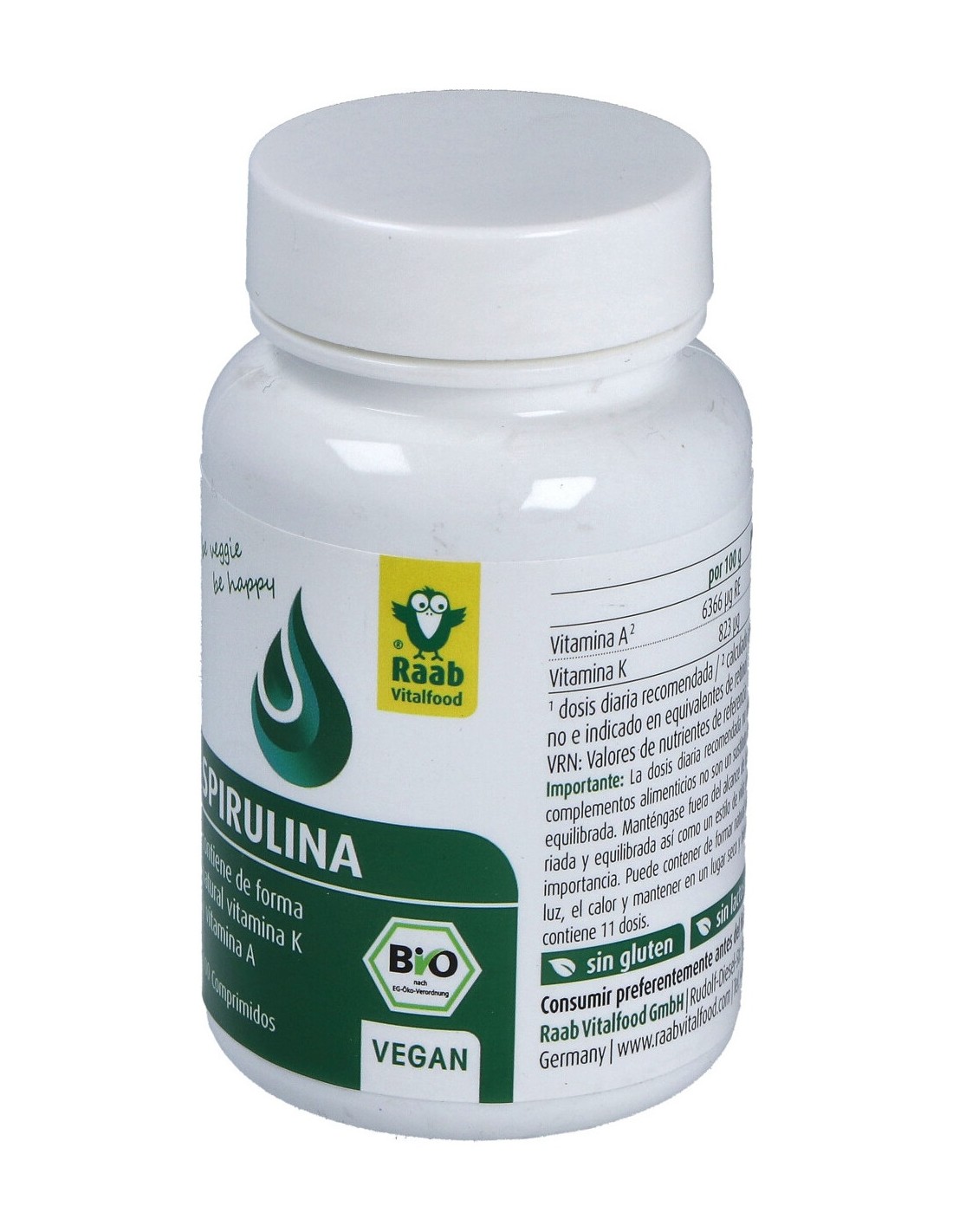 Complemento alimenticio en forma de comprimidos, elaborado a base de alga espirulina procedente de la acuicultura ecológica, que aporta un efecto saciante y remineralizante para el organismo. La espirulina es un alga con un contenido rico en hierro, calcio, potasio, fósforo, magnesio y zinc, que contribuyen a estimular las defensas del sistema inmunitario, ayuda a regular la presión arterial, a reducir los niveles de colesterol, y a disminuir el cansancio y el estrés, entre otros.