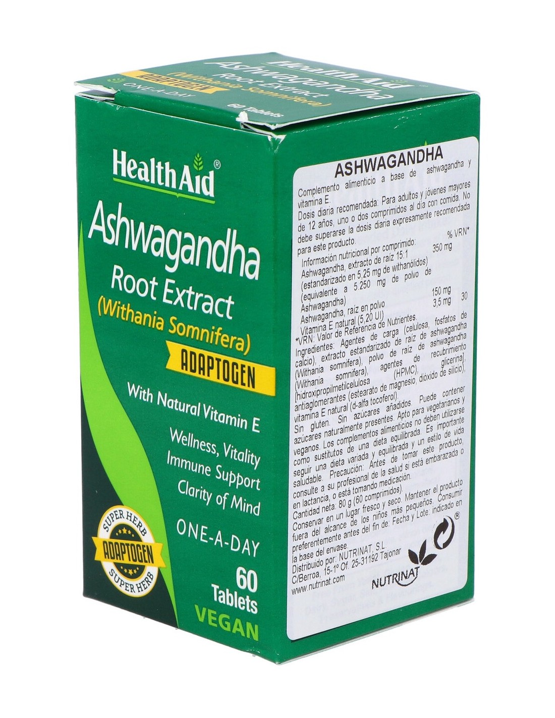 Contiene extracto y polvo de raíz de ashwagandha, aportando 5,25 mg de withanólidos por comprimido, y vitamina E natural por su aporte antioxidante, beneficioso en patologías como estrés, ansiedad y depresión, las cuales generan en el organismo una gran cantidad de radicales libres. Apto para veganos.