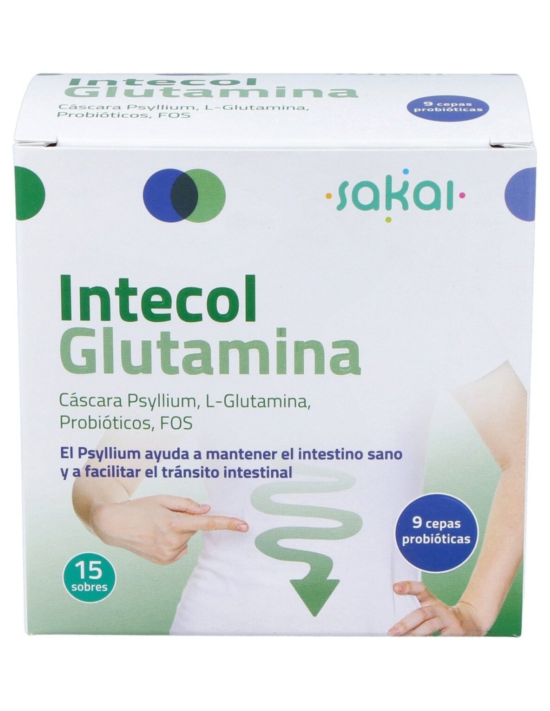 Complemento alimenticio en forma de polvos solubles, elaborado a base de L-glutamina, fibra soluble de cáscara de psyllium, prebióticos y 9 cepas de probióticos, que está indicado para favorecer la salud intestinal.