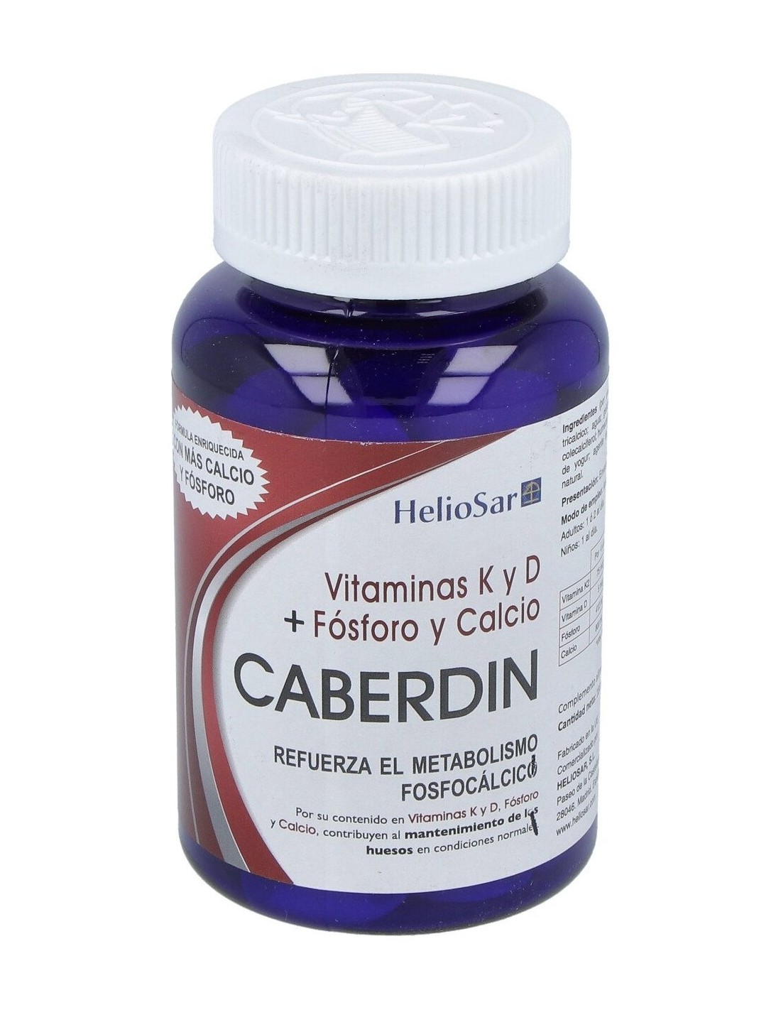 Heliosar Caberdin 60caps es un complemento alimenticio a base de calcio, magnesio y vitaminas A, C, D, B9, B12.